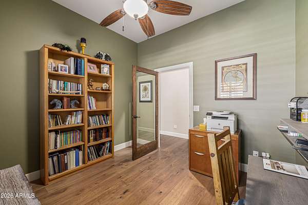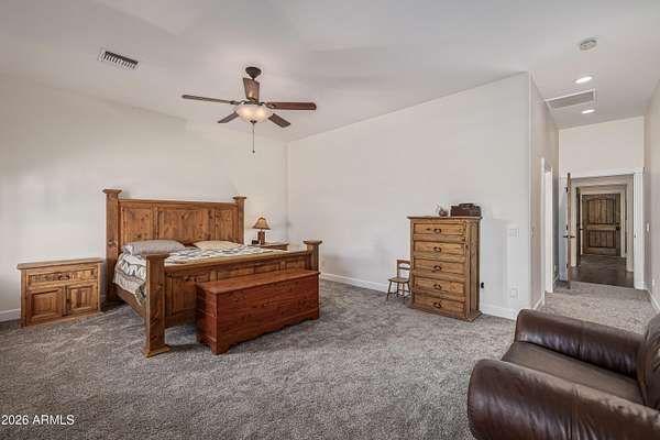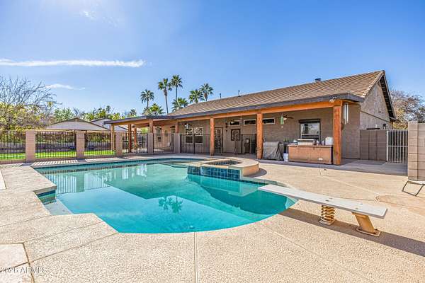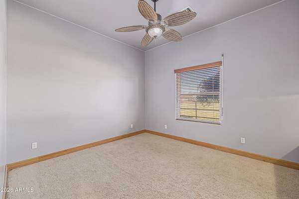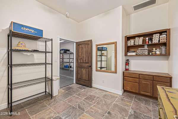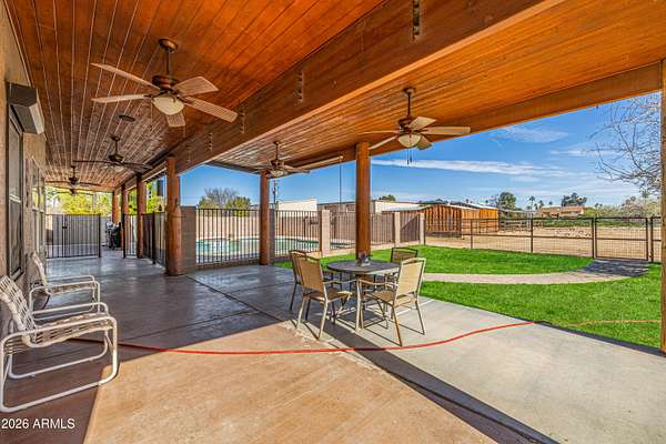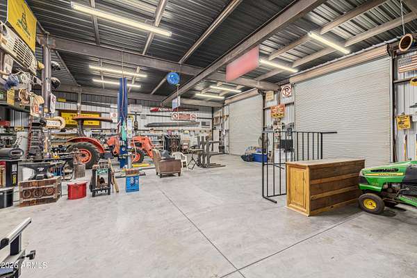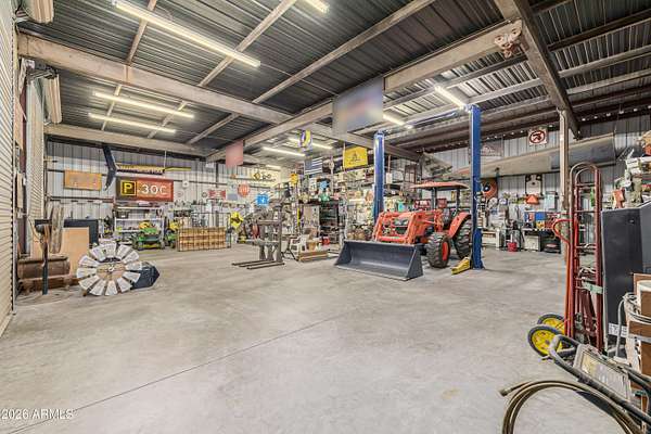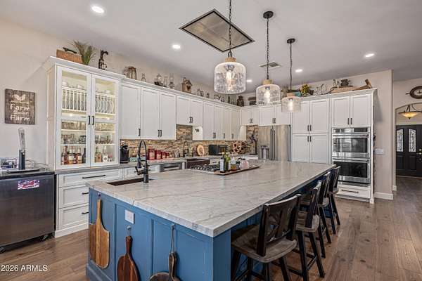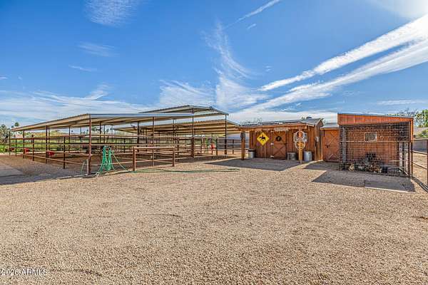 Bring your horses and enjoy wide-open living on this incredible 2.2-acre horse property offering the perfect blend of luxury living and rural charm on 2.2 acres of unincorporated land - no HOA! The property features mature orange trees, an impressive garden and shaded spaces that make the grounds both beautiful and functional. Designed for the serious equestrian, this setup includes 6 covered stalls, a tack room, hay storage, and a chicken coop, along with two separate turnout areas for your livestock to roam, graze, and move freely. There's also a 3300 sqft toy garage with a half bath and mezzanine, perfect for storing ATVs, trailers, or a workshop. The main home features hickory wood floors, an upgraded gourmet kitchen with premium appliances, custom cabinetry, and a large island that opens to a spacious great room ideal for entertaining. The extended 3-car garage on the main house provides even more space for vehicles and gear. Relax after a day in the saddle in the oasis backyard with a sparkling pool, spa, and covered patio, perfect for enjoying Arizona sunsets. Enjoy the best of country living and all the amenities you need. This exceptional property combines comfort, function, and freedom all just minutes from city conveniences.