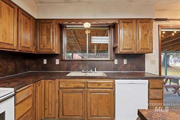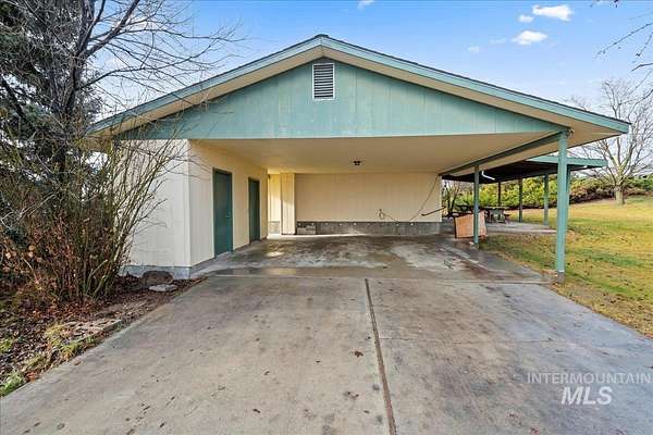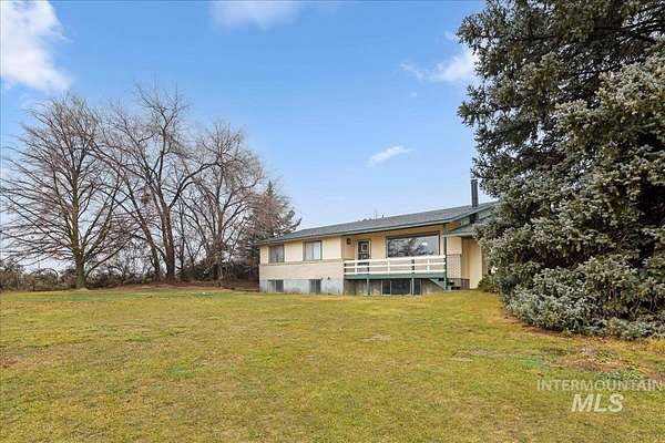 Set on 2 peaceful acres in the country, this 1978 single-level home with a full basement offers space, flexibility, & opportunity. The home features 4 bedrooms & 2.5 bathrooms, providing a functional layout with generous living space & tons of storage areas. Much of the home's original character has been thoughtfully preserved, including wood paneling in basement, beautiful natural wood grain interior doors & kitchen cabinetry, along with a kitchen breakfast bar/island that adds everyday convenience & gathering space. The full basement includes a large family room with a wood stove, creating a warm & versatile space ideal for entertaining, recreation, or additional living area. Major system updates provide peace of mind, including a brand-new septic tank, & roof approximately 3 years old. Heat pump for efficient heating & Central air is included for year-round comfort. The home also includes three new toilets, offering recent functional improvements. The property features a nice lawn, along with natural vegetation & sagebrush around the property, providing a blend of usable outdoor space & country surroundings. Enjoy a covered front porch, 28x24 carport, 30x13 covered patio, and a 34x24' shop with electricity & overhead door, ideal for projects, storage, or hobbies. The property also offers an administrative split opportunity adding future flexibility. Buyer to verify. See Docs Tab