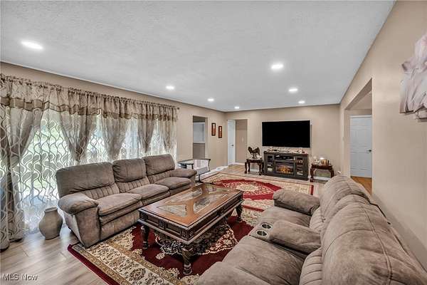 Welcome to this beautifully updated 5-bedroom,5.5 bath all-brick ranch,offering the perfect blend of modern upgrades and country living on 8.85 acres!As you arrive,you're greeted by outstanding curb appeal with professional landscaping,a new front door,and a wrap-around deck overlooking your private retreat.Inside,you'll find new LVP flooring,fresh trim,and new interior doors throughout.The spacious eat-in kitchen features beautiful cabinetry,island seating,appliances,and plenty of storage.The formal dining room flows into the living room with its stunning new stone fireplace and wood-burning insert!First three bedrooms are on the main leves,with the owner's suite offering a full bath,two large closets,and a ceiling fan,plus a hallway bath for the remaining rooms.The fully finished walkout basement has been completely transformed with new electrical,panel and subpanel,insulated walls and floors,and a full bar.This lower level offers a huge rec/party room,two bedrooms each with their own full bath that's completely remodeled,and one of the bedrooms has a walk in closet.There is also an additional 2 half baths in the basement-perfect for entertaining,multi-generational living,or guest space.Outside is where this property truly shines!The house also has a built in vacuum system,The detached 6-car garage has been newly sided(Aug 2025)with new gutters,newer doors,gas heat,a wood-burning stove,and a pool table that conveys.This can be a perfect man cave!The 60*40 barn also features new siding(Aug 2025),new doors,and updated drainage,making it ideal for,storage or workshop use.Enjoy your own garden,fruit trees(grapes,apples,peaches,plums,blueberries).A security camera system conveys!in 2022 the house was connected to public sewer.There is also a lightning rod,and a backup generator!Just minutes from the Metroparks,schools, highways and nearly 9 acres of land. Plus zoning that allows up to 7 horses.Schedule your private tour today!