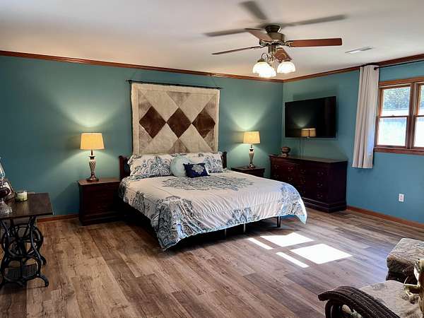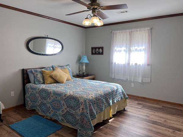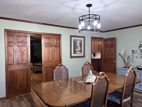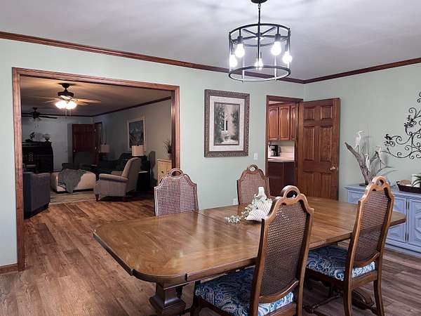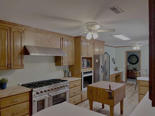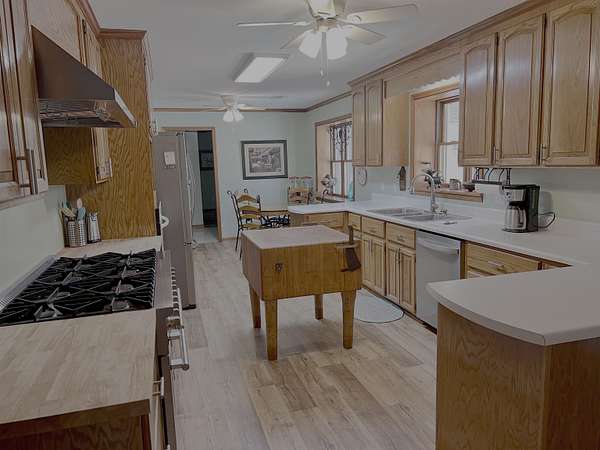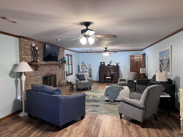 Custom built spacious 4-bedroom, 3-bath traditional-style home on over 9 acres of beautiful land, offering both developed and natural areas. This 2,986 sq. ft. property features an inviting eat-in kitchen with an extra-large gas oven, two additional ovens, a baker's dream pantry, built-ins, and abundant storage. Enjoy a cozy family room with a large fireplace, a formal dining room, and a huge main bedroom suite with a private bath. Solid wood doors, pocket doors, and lighted closets add thoughtful touches throughout. Outside, relax in the fenced yard with a pool, and explore the acreage with mature fruit trees. Flower beds covered with sprinkler system. Four storage buildings (the largest storage building is 45x30) on the property provide ample space for workshops, hobbies, and storing equipment or recreational toys. A 2-car garage and plenty of storage make this move-in ready home perfect for comfortable country living.