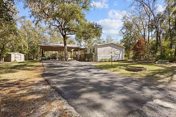 Welcome to your new little slice of heaven located in gorgeous Dixie County , just around the corner from the Suwannee River. This home is immaculate , has been updated and maintained to the highest standard. An oversized 2000 DWMH 3 bedrooms/ 2 bathrooms with a bright open floor plan. Property has a nice private driveway leading you to the oversized 2 carport large enough for 4 cars, boat, ATV , bikes etc. Front entrance offers a peaceful covered porch gazing out to the peaceful yard. Entering the home you'll see the bright open floor plan with majority new laminate wood flooring, a wood burning fireplace and a great view to the dining room and kitchen. Kitchen is nice and open with loads on cabinetry and a great breakfast nook area. Each guest bedroom in immaculate condition as well as as bathroom, with all update plumbing , faucets and fixtures throughout the whole home. Master bathroom is over sized with a spacious master bathroom with stand up shower and dual vanities. Exiting the home out the back door you have a laundry /mud room and a covered porch leading you to the massive carport. The yard is like a state park, gorgeous oak trees speckled throughout , offering multiple spigots over the total 2.34 acres , a chicken coop/feed room, storage/workshop with window unit additional utility building and pump house. Amazing fiber internet offered for ease of all wifi items. AC, hot water heater and roof all new within 5-6 years. Immaculate vinyl siding all brand new skirting as well as new lending rule of permanent backing. A short drive to town for shopping and dining. Call today for YOUR tour!