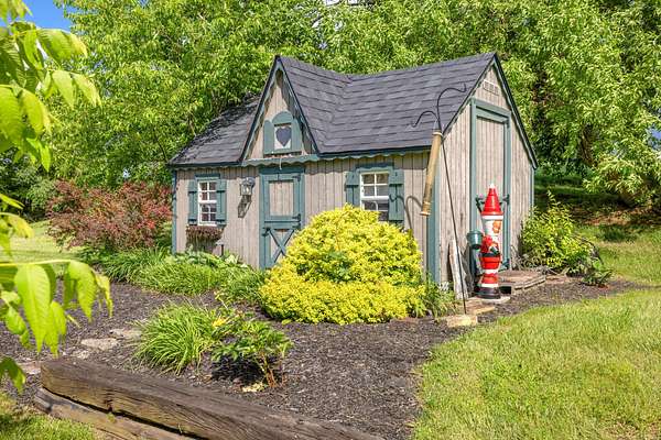 Elegant Estate with Luxurious Amenities on 3.41 Acres. This stunning home is the epitome of elegance, offering an array of upscale features and thoughtful design throughout. Step into the welcoming two-story foyer, which flows seamlessly into a warm and inviting great room complete with a gas log fireplace framed by custom built-in bookcases. At the heart of the home is the kitchen-a true family hub-featuring a spacious island with bar seating, smooth top range with built-in bookshelves, an oven with warming drawer, built-in desk, and ample windows that flood the space with natural light. Host memorable gatherings in the formal dining room, adorned with wainscoting and beautiful hardwood floors. Across the hall, a versatile formal sitting room offers the perfect space for an office or library. The main-level master suite is a private retreat, boasting a luxurious en-suite bathroom with a relaxing Jacuzzi tub, a large walk-in closet, and elegant finishes throughout. Upstairs, you'll find four additional bedrooms, and two full bathrooms-perfect for family and guests. -- See supplemental remarks. The fully finished basement is designed for fun and entertainment, featuring a wet bar, gas log fireplace, game area, full bath, and ample storage space. Outside, enjoy a beautifully designed resort style setting! The expansive concrete patio surrounds a sparkling in-ground pool, ideal for entertaining or simply relaxing in a tranquil setting all set on a picturesque 3.41-acre lot. All of this is only minutes from the Bluegrass Parkway and is located right of US 127.