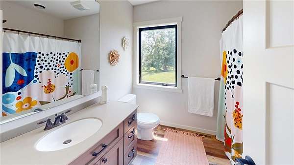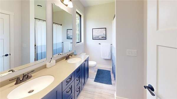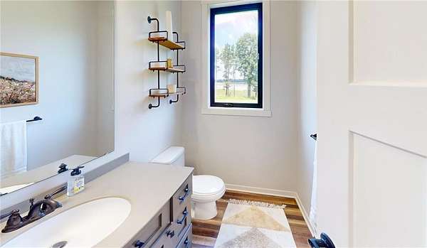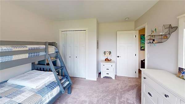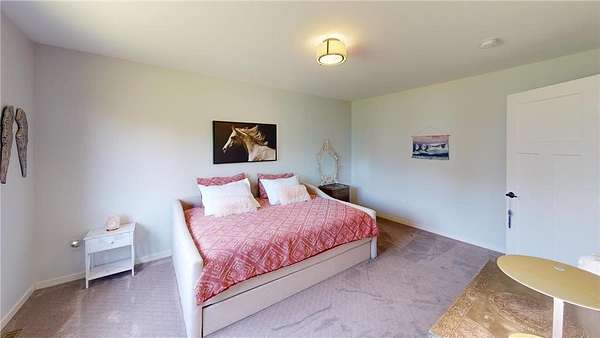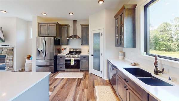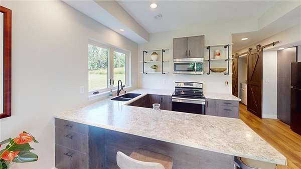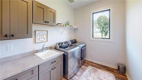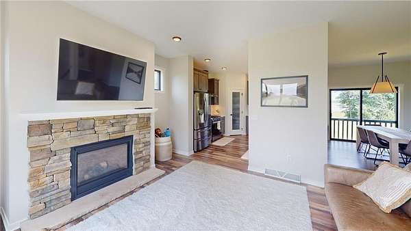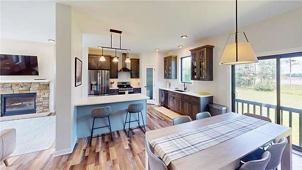 Beautiful setting located in the rolling countryside of the Saint Croix Valley. 2-acre lot on Bloom Lake, 3,392 Sq Ft walkout two-story with stunning country views from every room. The main level features nine-foot ceilings, a soaring 19-foot high entryway, quartz countertops, black stainless steel appliances, a stone fireplace, a main level owners' suite with en-suite bath, and main level laundry. Three large bedrooms and a full bath share the 2nd level. The attached garage is fully heated with room for 4 plus vehicles, 12-foot ceilings, 10 and 8 ft tall doors and has it own private staircase to the lower level suite. The walkout lower level comes with a 2nd laundry setup, full 2nd kitchen, 5th bedroom, and a flex space perfect for use as a 6th bedroom, home office, guest suite, or home gym. Wired for whole house generator ready to go.