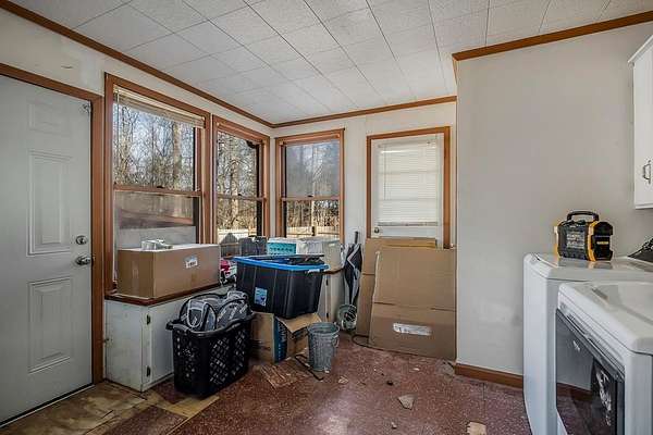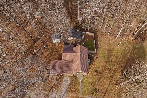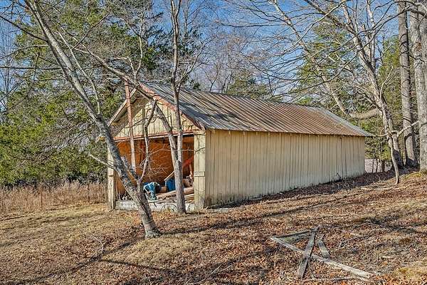 The perfect small farm everyone is looking for! Main BR on first floor plus two rooms AND a loft upstairs. Full bath on main floor; half bath up. Large utility room (not heated) with plenty of windows, would make a great seed-starting area. House has impressive wood-burning fireplace in central room. Made from stone sourced on the land, it augments the central heat and air on those chilly days! Plenty of firewood available on approximately 7 wooded acres. Some rare-to-find wormy chestnut paneling on main level adds to the rustic charm. Fencing, workshop, barn and outbuildings make these mostly level 15 acres ready to bring to life as farming property! Both the workshop and the yellow storage building have concrete flooring. There's a wet-weather creek downhill behind the barn that goats, horses etc. can access. Garden spot used for many years has rich soil and can be ready in time for spring planting! Private and peaceful. Stop dreaming! Instead, make this your very own homestead!