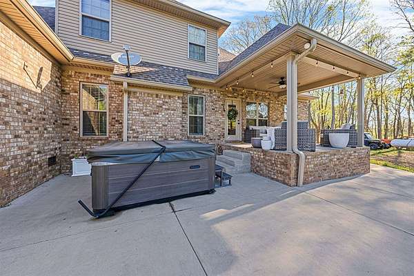 - Covered Front Porch, Covered Patio, Exterior Lights, Hot Tub, Landscaping, Mature Trees, Sprinkler System