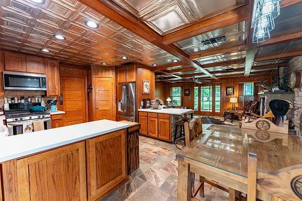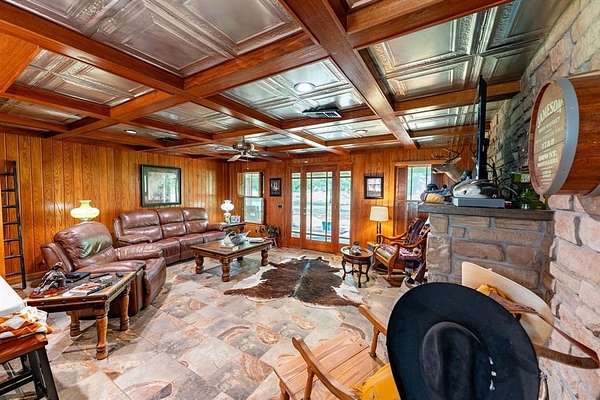 This 128-acre property is built for freedom and function. Setting among mature pecan trees, the 1,468 sqft home has 2 bedrooms and 2 bathrooms--comfortable, efficient, and easy to maintain. A 2,000-foot airstrip runs through the land, ideal for private flights or weekend getaways. The 60x100 hangar offers secure space for your aircraft, vehicles, or gear, and there's a solid workshop ready for tools and projects.