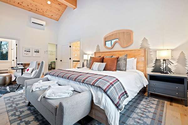 Amazing opportunity to purchase a fully furnished, turnkey new construction home in the desirable Powder Ridge neighborhood, just minutes from Sunday River. This beautifully designed mountain retreat offers thoughtful details throughout and a maintenance-free exterior featuring a standing seam metal roof and on-demand generator! The main level includes two bedrooms and a full bath, along with an open-concept kitchen, dining, and living area perfect for entertaining. Upstairs, the primary suite features a luxurious spa-like bathroom and serene mountain views. Every above-grade space is equipped with a heat pump for efficient heating and cooling. The lower level offers two additional bedrooms, a shared bath, and a spacious game room, ideal for guests or family gatherings. This home truly checks all the boxes- beautifully finished, low-maintenance, and ready for immediate enjoyment. Currently on track to gross nearly $200,000 in its first year of rentals, it's a perfect blend of luxury, performance, and investment potential.