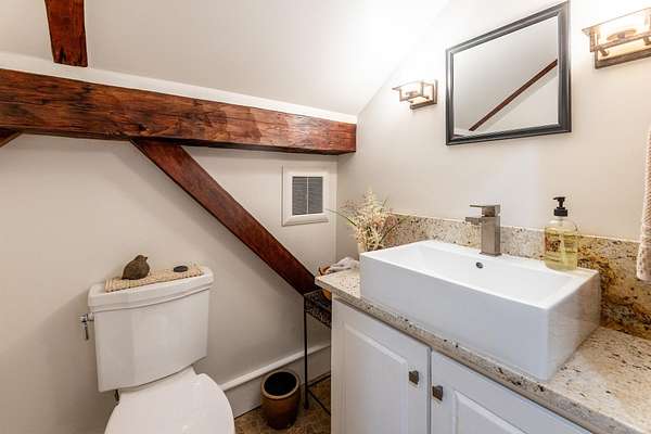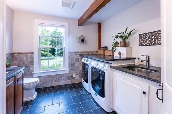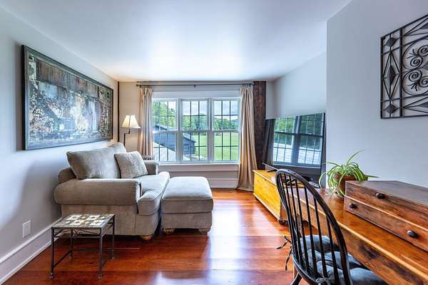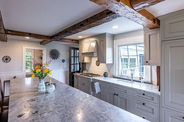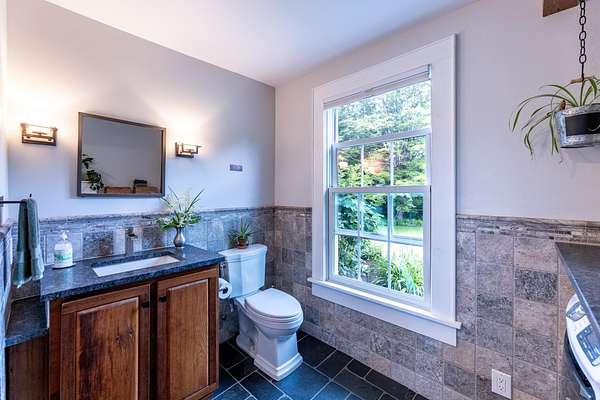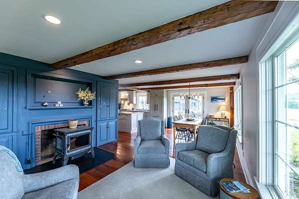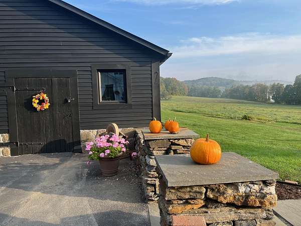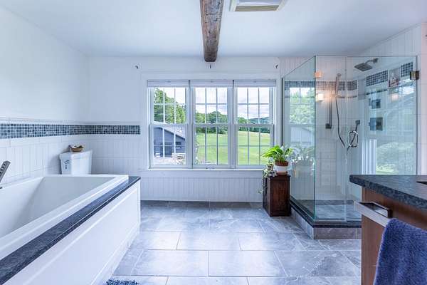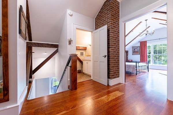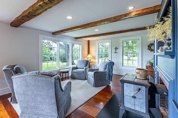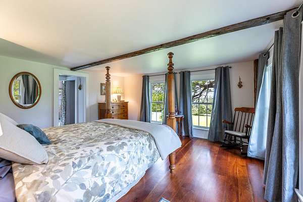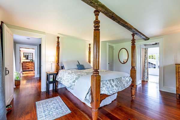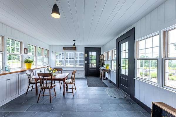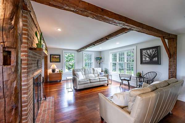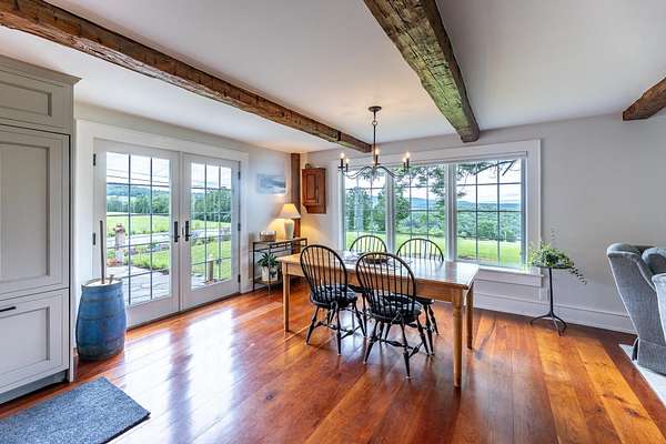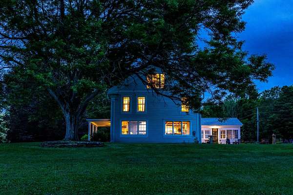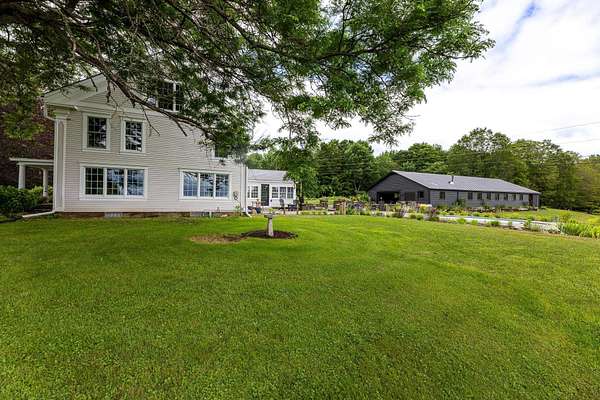 Stately hilltop home built by Silas Banister c.1800, recently undergone a complete restoration. Quality materials & craftsmanship throughout. It has gorgeous views of nearby Ascutney Mountain & long-range views of NH. The property consists of 98 acres made up of fields, hard & softwoods, trails, a large sugarbush (potential for a future boiling operation). Conserved by Upper Valley Land Trust, enrolled in Current Use. The main floor offers a new kitchen which boasts a beautiful 11' quartzite island & counters. Dining & Family Room with soapstone woodstove, Living Room with a new Rumford Fireplace with rod iron & glass doors for efficiency. A large Sunroom with slate floor, more than an entry it's a nice transitional space to enjoy, 3 BR/3 BA and a Sitting area on the 2nd floor with a tranquil view of the back fields. 2 additional BRs and a half bath on the 3rd floor. All new wiring, plumbing, new Bosch propane furnace supplies radiant heat, triple pane, Anderson low-E4 windows, sheetrock, DaVinci slate-like rubber roof & cherry floors. Fully insulated, extremely efficient. Custom built trim, wide baseboards, wainscoting & cabinets. 200+ year old pine boards from the house were used to craft bathroom vanities, 3rd floor stairs & beautiful doors. Outdoor amenities include in ground pool, gardens & lovely stone patio. A large-3600 sq ft former dairy barn with new wiring & FHA furnace & oil tank. Now used as a garage, workshop & abundant storage space offers ENDLESS possibilities!