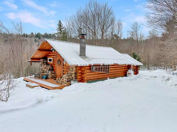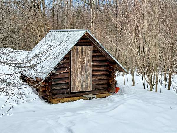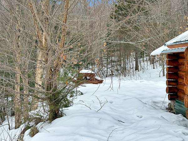 Off grid hemlock log cabin on 4.23 cares in Carthage, Maine. Personal use, investment property, or both. Over 220 5-star reviews on Airbnb, Hipcamp, VRBO, and Facebook. Situated in the wilderness of western Maine just minutes from skiing, hunting, boating, hiking, swimming, ATV/snowmobile trails, Mount Blue State Park and Tumbledown Mountain. Year-round, 420-square-foot cabin built in early 1980s with dug well, full kitchen, gas range and refrigerator, solid surface countertops, wood cabinets, running water from hand pump, year-round grey water system, pine slab island with small breakfast bar, solar and battery lights, JA,tul woodstove, slate tile hearth, monitor heater in bedroom, firepit and 8-foot picnic table. Roof on both buildings replaced in 2017, solid oak, hardwood floors installed throughout in 2017, all windows replaced between 2017-2025, 6x16 foot deck on front, 5x12 foot deck on back, all new decking installed and both buildings weather sealed in 2025, pressure treated skid foundation installed under log outhouse shed 2025. Acreage is on South facing slope perfect for solar development and/or gravity fed, running water. Abundant wildlife, streams, berries, boulders, hemlock, maple and beech trees. 2025 Survey. Deeded access on private road.