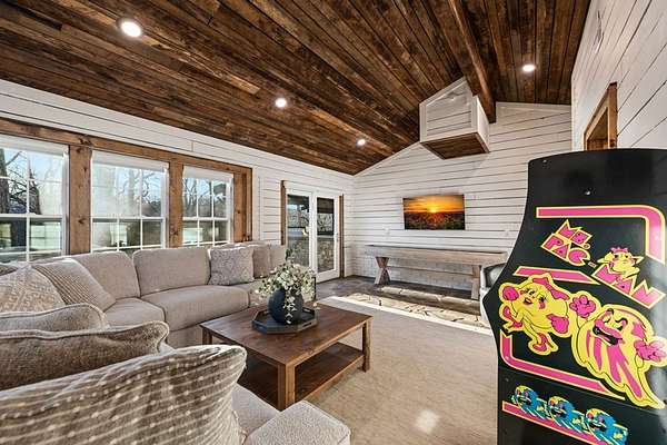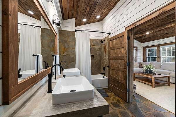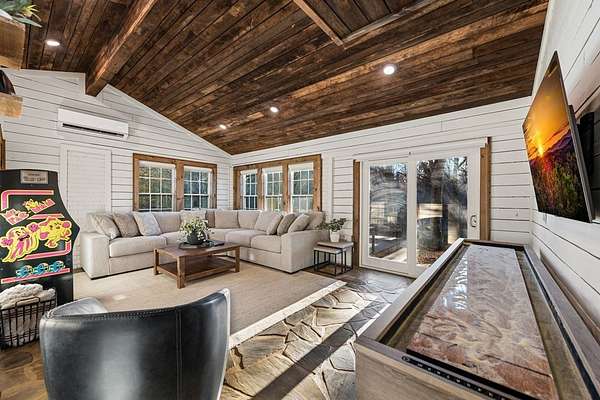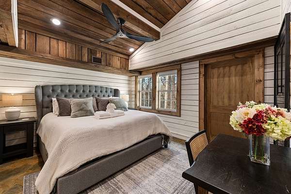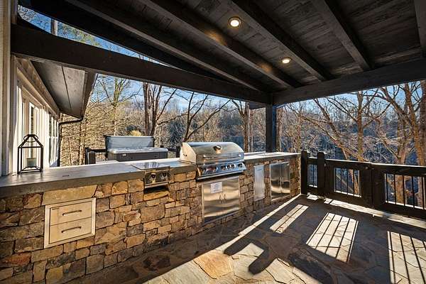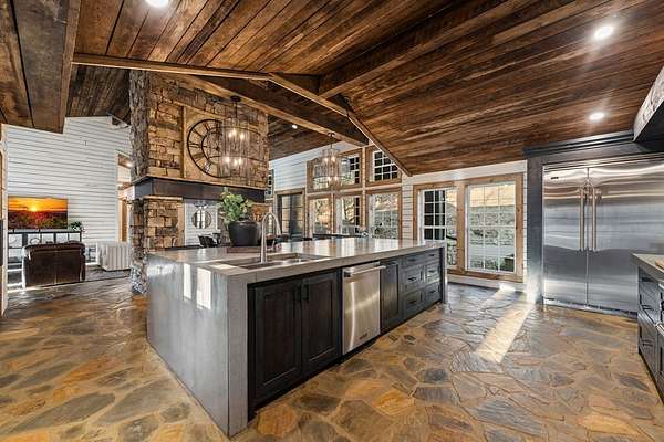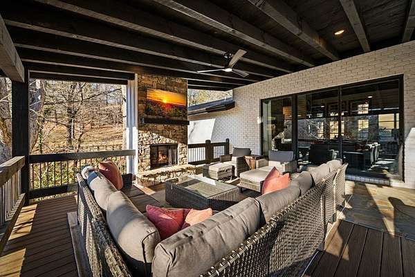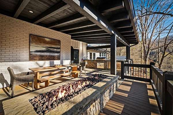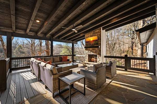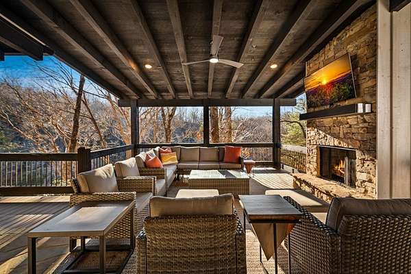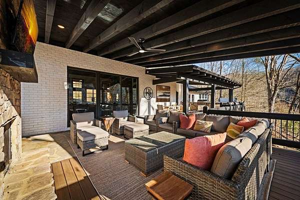 The creek is the luxury feature you cannot recreate—and the reason buyers will not forget 166 Red Oak . Set along expansive Fightingtown Creek frontage with 5 unrestricted acres, this is not just another mountain home—it is the kind of property that instantly feels different. Private, polished, and impossible to duplicate, this unique modern retreat blends the sound of moving water, a park-like setting, and quality craftsmanship into a place buyers will want to experience in person. Built by Keith Sumner and offered furnished, the home features approximately 2,600+/- square feet, 3 bds, 3 ba, and easy one-level living designed for both everyday comfort and elevated entertaining. The open great room is filled with natural light and anchored by vaulted ceilings, expansive sliding glass doors with creek views, and a stunning stone fireplace that brings warmth and character to the space. The kitchen was made for gathering, with Viking appliances, an oversized concrete island, and a dedicated butler's pantry that keeps everything tucked away and effortless. Outside, the lifestyle only gets better. A true party porch with outdoor stone fireplace overlooks the creek, while multiple gathering spaces, a beautiful outdoor kitchen, oversized gas fire pit, newly added hot tub, and professionally landscaped grounds create a setting that feels more like a private resort than a residence. A newly completed bonus room and bathroom add flexibility for guests or extra living space. With direct creek access for trout fishing, paved access, no HOA, and a workshop/additional structure, this property checks boxes that are getting harder and harder to find. Located just minutes from downtown McCaysville and convenient to Blue Ridge, Lake Blue Ridge, hiking, golf, and more, this is a rare opportunity for a full-time home, luxurious getaway, or short-term rental investment. Homes can be updated. Setting, water, and feeling like this cannot. Call us for a tour!