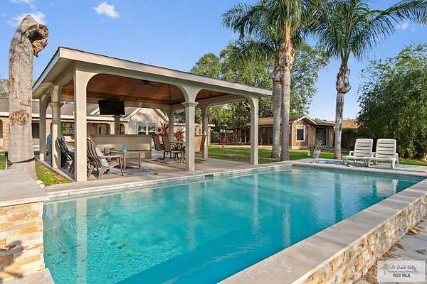 Est $2,450/moSpacious country living on 1.68 acres! Step inside to high stunning cedar ceilings, large open kitchen with granite countertops, large office with built-ins, a spacious primary suite, and convenient indoor laundry. Continue outside to a large covered patio overlooking a newly installed swimming pool, along with guest quarters, a chicken coop, and a peaceful resaca. Fully fenced with a gated entry, this property offers both privacy and room to grow.