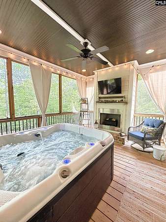 - Covered Back Porch, Covered Front Porch, Fireplace, Hot Tub, Irrigation Well, Landscape Lighting, Partial Gutters, Screened Back Porch, Sprinkler, Uncovered Back Porch