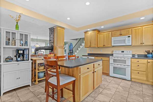 Sunday's OPEN HOUSE CANCELLED! Welcome to 166 School Street in Berwick, Maine, offering a rare combination of space, versatility, and opportunity on 4.6 acres of level, usable land. This property is a true homesteader's dream, ideal for those looking to grow their own food, raise animals, or create a self-sustaining lifestyle while still being conveniently located near town. Adding to its charm, the property is nestled next door to a picturesque Christmas tree farm and lavender field, enhancing the peaceful, rural setting. Over 3 acres of open hay field provide the perfect setting for gardens, livestock, or future expansion. Car enthusiasts and hobbyists will appreciate the impressive outbuildings, including a barn with a garage door and cement floor, perfect for storing multiple vehicles, equipment, or creating a workshop, as well as a detached 3-car garage with storage above for additional space and flexibility. Inside, the home offers over 2,000 square feet with 4 bedrooms, 2 baths, and a functional layout filled with character. Enjoy tons of natural light, beautiful built-ins, classic bay windows, an elegant arched doorway, and a stunning curved staircase that adds timeless appeal throughout. An established double office space provides the perfect setup for working from home, running a business, or creative pursuits. Whether you're looking to build out your homestead, house your collection, or simply enjoy the freedom of wide-open space, this property delivers a unique opportunity to create the lifestyle you've been looking for. Sunday's Open House Cancelled!