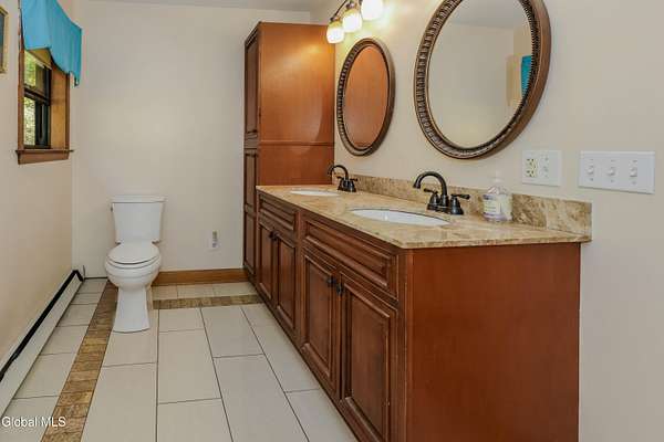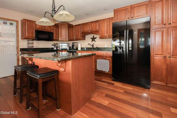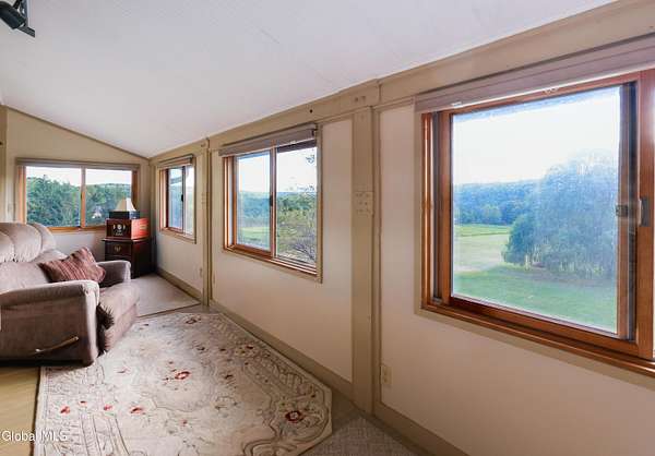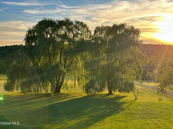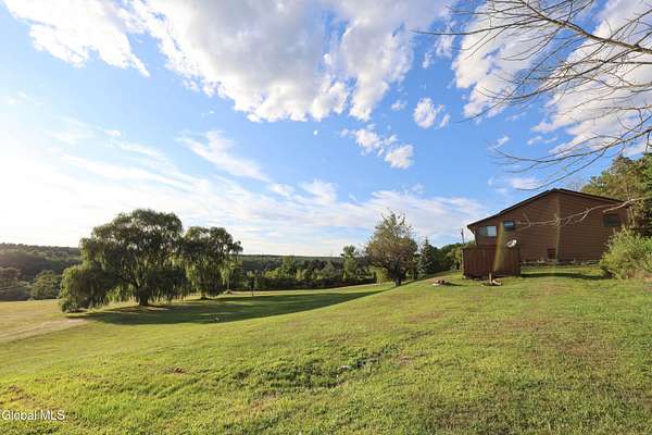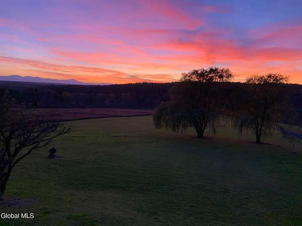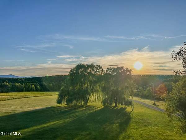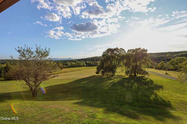 Welcome to the breathtaking 166 Stanton Rd, a well maintained 4 Bed/3 Bath Split-Ranch in the heart of Coeymans Hollow. This 13.6 acre lot is stunning, with clear fields in the front of the house and wooded hills behind. As you approach the long driveway you will see beautiful Willow trees providing privacy to the home which has a large 2+ car garage, first floor or 2nd floor entries, a 2nd Story porch and an enclosed three season room. In the rear of the house you have a deck off of one of the primary bedrooms. On the first floor there are two bedrooms, one is a primary bedroom en suite full bathroom, an additional full bathroom and a living room with cozy wood stove. As you go upstairs you will enter dining room/living room area, modern kitchen with granite counter tops, a primary bedroom with balcony, bedroom and full bath. Solar Panels are leased and would be transferred with sale