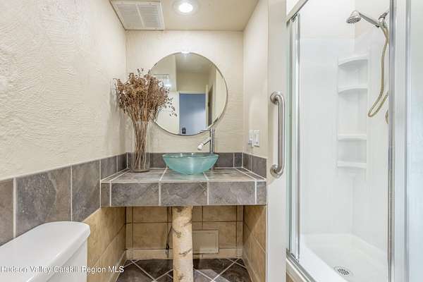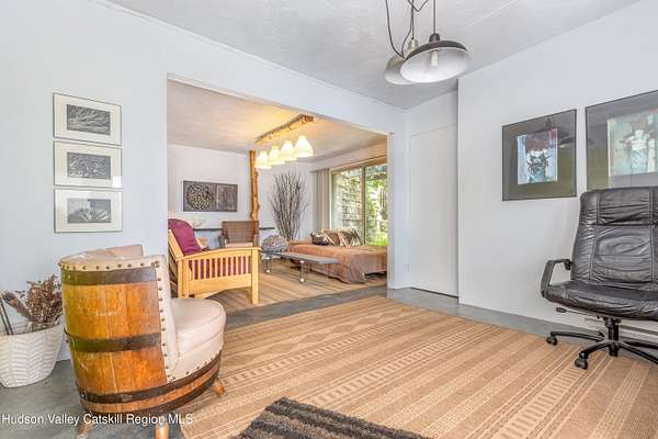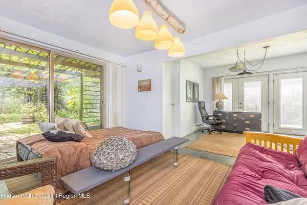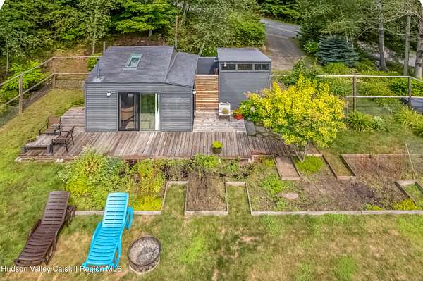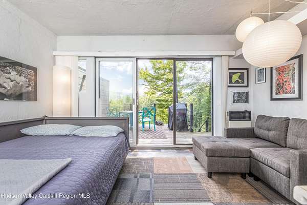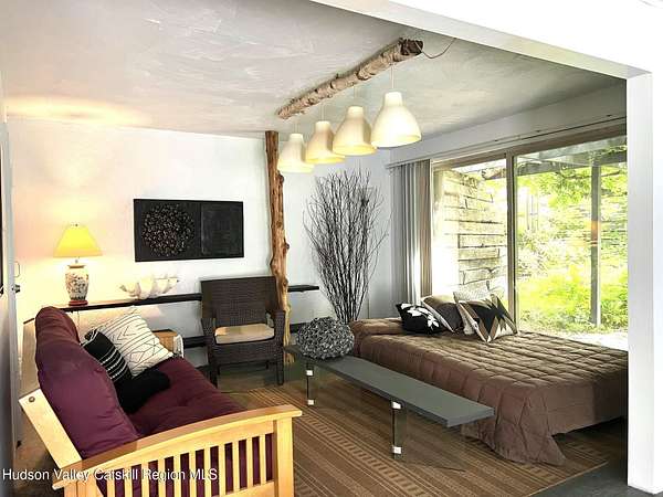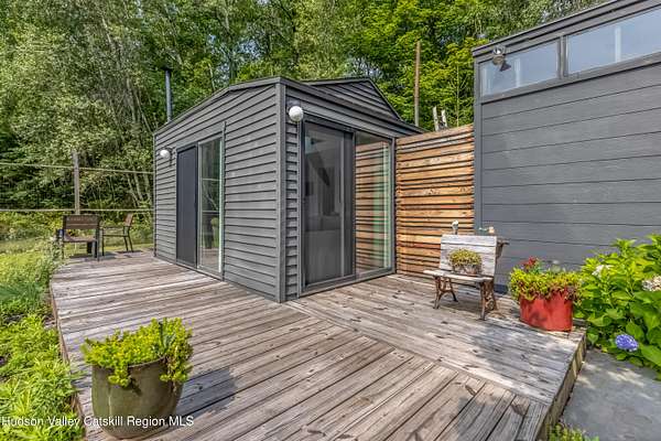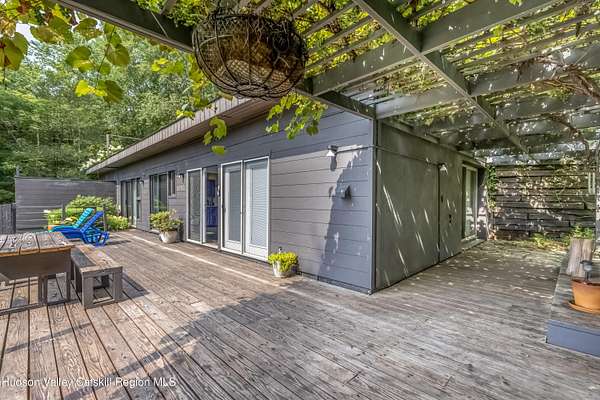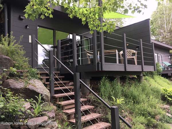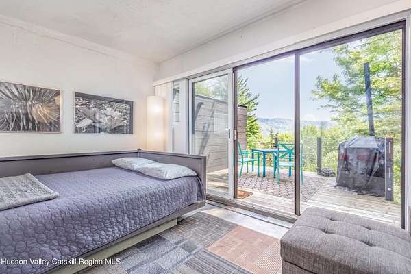 WHERE ARCHITECTURE MEETS NATURE! A rare underground retreat with walls of glass doors framing breathtaking mountain & valley vistas. Hidden in plain sight, this one-of-a-kind property offers unmatched privacy, modern style, and year-round comfort thanks to its earth-protected design. This is the Trifecta of properties - a stunning private setting, unique architecture, and endless possibilities. As you arrive, you'll pass through an arbor laden with grapes, then turn the corner to a sprawling deck running the length of the house, where panoramic mountain & valley views spill in through floor to ceiling glass doors.'''' Inside, a distinct mid-century/contemporary vibe - crafted by the graphic designer/owner- blends polished concrete floors with creative custom touches. The 2-bedroom, 2-bath layout offers flexibility for living, entertaining, and income potential. (current STR permit in place) The decor reflects the creative colorful nature of the designer owner. At the far end of the home, the Second Bedroom functions as a private guest suite with its own entrance, deck and gardens - all oriented toward the toward the sweeping mountain & valley views. A privacy fence ensures seclusion, while a stylishly designed bath and well-equipped kitchenette with custom finishes make it perfect for extended stays for guests or family that appreciate their own private space or continued use as an Airbnb (permit in place). Above the main home sits The Cottage, a self-contained retreat with its own driveway and parking area. Here, an expansive deck, charming Kitchen, bath and gas woodstove, and floor-to-ceiling glass doors bring the beauty of nature in all its glory into every moment, when indoors and outside. The cottage is also Airbnb-permitted and ADU-approved, offering even more flexibility for use as a guest house, income rental, or insuring studio/office space. The bedrooms & bathrooms listed are as follows: The main house has 2 br/2ba. The separate cottage which is self contained and has 1 BR/1BA and is 320 Sq ft. The square footage in the listing does not include the cottage square footage. The property is privately situated by lush natural gardens, with a huge field of ferns leading to the creek below. Whether you're seeking a full-time residence which affords an abundance of uses or a serene escape, this is a once-in-a-lifetime opportunity to own and call one of the area's most distinctive and unforgettable homes your home. Located just minutes to the beautiful Spruceton Valley where you can enjoy fishing, hiking or spending time at the ever popular WEST KILL BREWERY as well as the close proximity to some of the best skiing and festivals in the area at Hunter Mountain.