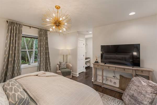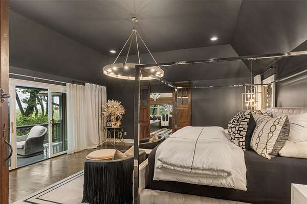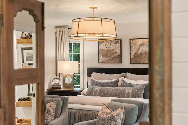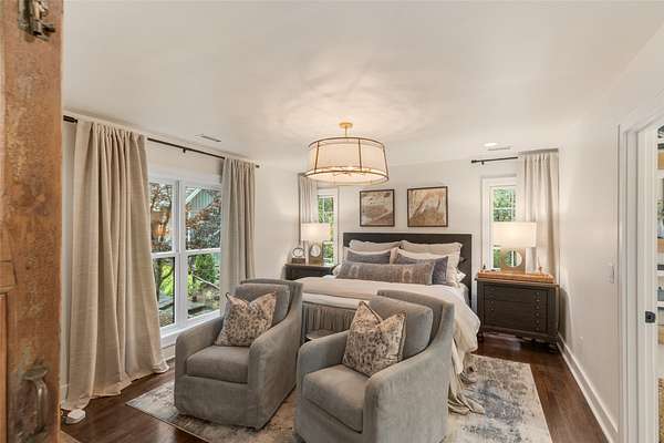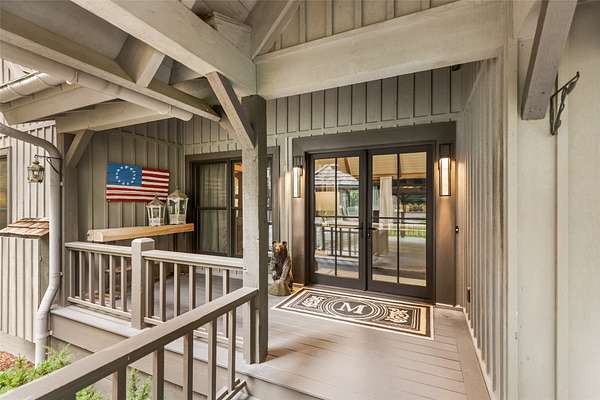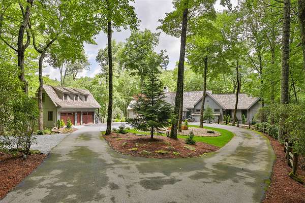 Welcome to your dream mountain retreat! This extraordinary single-level luxury estate rests on three private, level acres in Cedar Ridge Estates, located just five minutes from the crossroads of Cashiers. Professionally designed and decorated, it blends refined mountain living with exceptional comfort and craftsmanship. The home's elegance immediately shines as you enter through the circular drive framed by stone columns. Enjoy views of Chimneytop Mountain, Little Bald Rock, and Little Sheepcliff's dramatic rock face. The main home offers three bedrooms and four baths with an open floor plan, soaring cathedral ceilings, custom wood doors, stone accents, exposed beams, and designer lighting and tile throughout. The family room's floor-to-ceiling stacked stone fireplace is a showpiece, while an intimate private den/library with its own fireplace offers a cozy retreat. A spacious screened porch with cedar flooring and lapped walls extends your living space for large gatherings. The chef's kitchen boasts dual islands, a copper range hood, 48" range with six burners and griddle, double ovens, Sub-Zero refrigerator, wine cooler, microwave drawer, prep sink, and floor-to-ceiling custom cabinetry. The butler's pantry with a beverage station and storage makes entertaining a breeze. The dining area, with a custom 12-seat table by an Austin designer, is framed by a bay window with calming views. The primary suite opens to a private deck and includes two walk-in closets, a large, jetted tub, walk-in shower, and dual vanities. Additional bedroom suites, each with private baths, are positioned on the opposite side of the home for maximum privacy. A stone path leads to the attached guest cottage with a bedroom, full bath, and kitchenette. Above the detached oversized garage, a large living area is perfect for a billiards room, office, studio, or bunkroom. The rear deck offers ultimate relaxation under the stars with a sunken hot tub. Have fur babies? A dedicated, easily accessed outdoor space is designed for pets. Located at over 3700' elevation, you'll enjoy comfortable summer and winter temperatures. Every detail has been thoughtfully curated and professionally designed and landscaped, featuring stunning lighting and custom finishes. Designed and completed by Tonya Miller. This rare offering is in one of the area's finest neighborhoods, featuring newly paved roads and fiber optics. Mountain luxury living at its finest-don't miss this must-see estate.