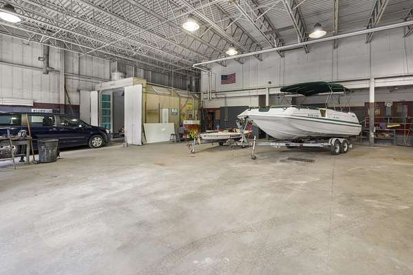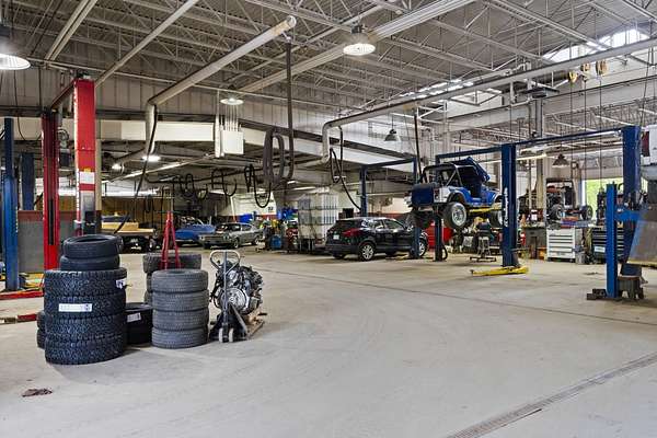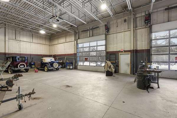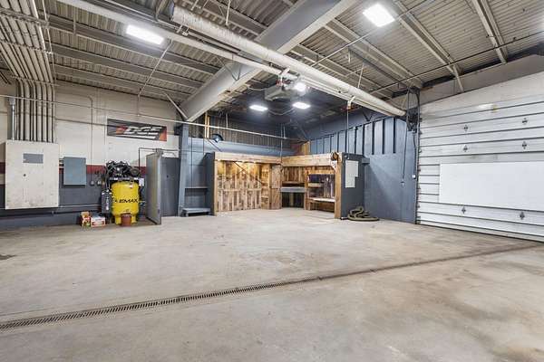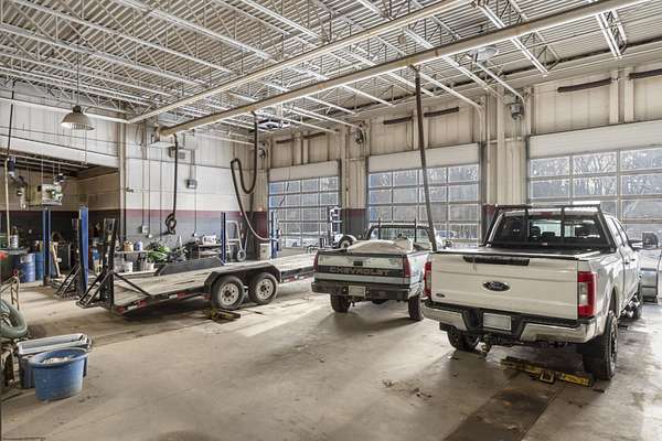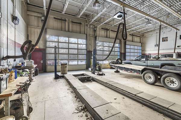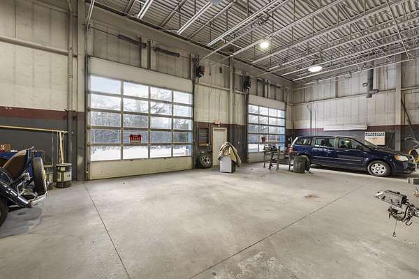 Featuring concrete floors and high ceilings, the building is equipped with 110/220/208 three-phase power, compressed air, HVAC, and LED lighting. It includes loading docks and receiving bays for efficient operations. The paved, well-lit parking lot can accommodate 247+ vehicles, making it ideal for inventory display or customer parking. Additional parking options also available. Recent installations include a forced hot air/waste oil furnace, one tandem axle lift, one single axle lift, a four-post 12,000 lb. lift, and a commercial overhead exhaust system. Offices with multiple configurations are available to suit your administrative needs. This property is ideal for an automotive dealership or service center, equipment sales and service, retail showroom and warehouse, light manufacturing or assembly facility, distribution center or logistics hub, service and parts center, garden center or outdoor retailer, or commercial business incubator. Fully equipped and ready to meet your business needs, this property offers a prime location, extensive features, and significant growth potential. This property is an excellent owner/user investment, offering redevelopment opportunities or expansion options to suit your future growth. The seller and/or agent make no representation as to the accuracy of the square footage. Buyer responsible for their own due diligence.