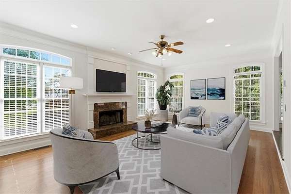 From Hwy 41, Cobb Pkwy, pass Cedar Crest, Left on Blackwater Trail/Dabbs Bridge Rd, left on Windrift Dr. Home is on the right.