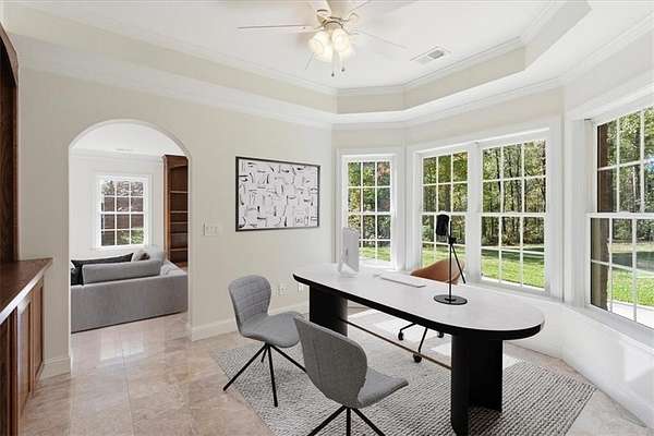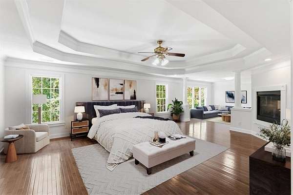 - Bookcases, Cathedral Ceiling(s), Crown Molding, Disappearing Attic Stairs, Double Vanity, Entrance Foyer 2 Story, High Ceilings 9 ft Main, High Ceilings 9 ft Upper, High Speed Internet, Recessed Lighting, Tray Ceiling(s), Walk-In Closet(s)