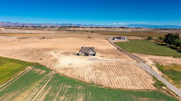 Nestled in a peaceful rural setting, this country farmhouse style 2022-built home sits on 10 fully irrigated acres with the front half planted in hay/grass and serviced by gated pipe. Lived in for just two years, the residence offers a spacious 3-bedroom, 3-bath, 2-car layout with an additional upstairs bonus room featuring its own 3/4 bath - easily functioning as a 4th bedroom, private retreat or office. Inside, the home showcases high vaulted ceilings and an open-concept living with a towering fireplace and kitchen area complimented by upgraded Thor appliances that elevate both form and function. Expansive windows capture stunning 360-degree views of the surrounding landscape, bringing natural light and scenery into every corner. Lots and lots of storage with two pantries and some accented floating shelves. The acreage provides abundant opportunities; room for additional pasture, horses, or any farm animals, plus ample space to add a large shop with the electrical transformer set close by. Coyote Hills Subdivision boasts six 10-acre parcels with four beautiful, modern homes already built - the property offers exceptional privacy, generous spacing between neighbors, and the tranquility of wide-open country living. Walk out to the extra-large covered patio to experience the amazing views of the Mesa and the Bookcliffs. A rare blend of comfort, utility, and breathtaking surroundings - this is rural living at its finest. Engineering stem wall foundation, central air, and tankless tank plus so much more.
