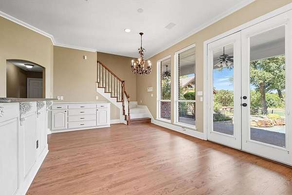 - Chandelier, Decorative Lighting, Double Vanity, Eat-In Kitchen, Granite Counters, Kitchen Island, Multiple Staircases, Open Floorplan, Pantry, Sound System Wiring, Walk-In Closet(s), Wet Bar