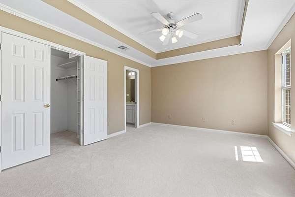 Outdoors, enjoy your stunning pool complete with hot tub, rock waterfall, and diving board! Grill out rain or shine at the built-in grill on your covered patio. Come home and be greeted by your serene tree-lined driveway and brick entry.