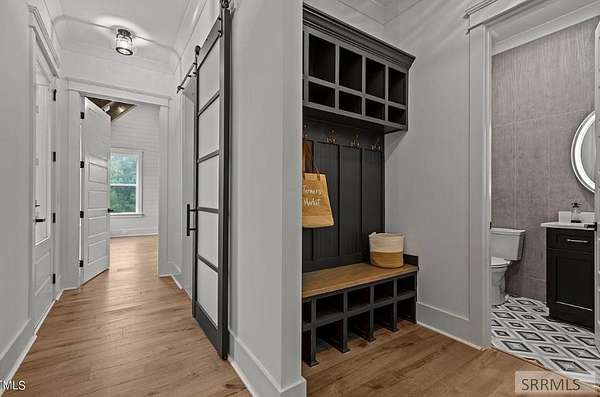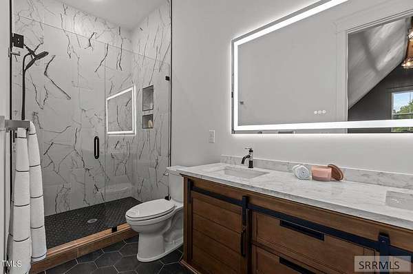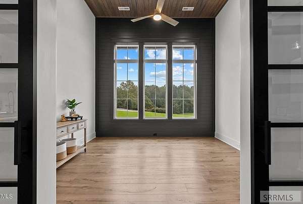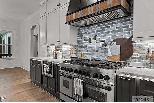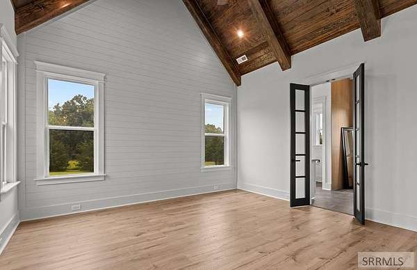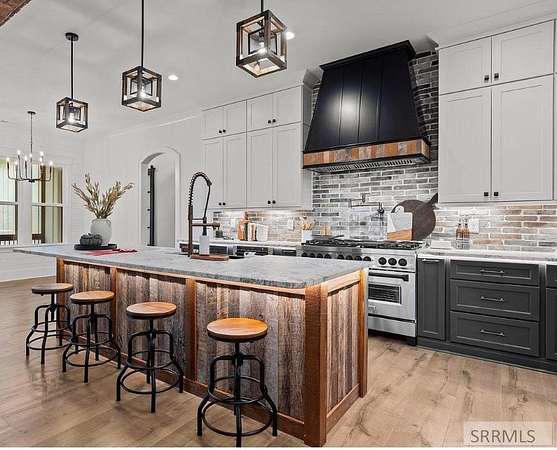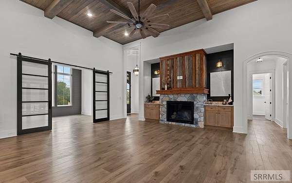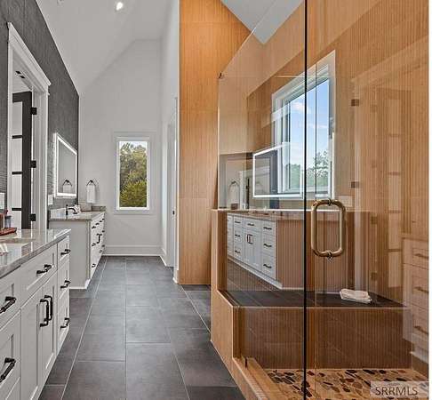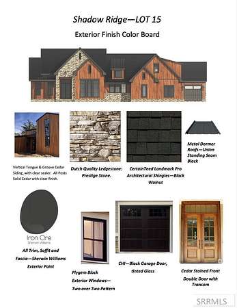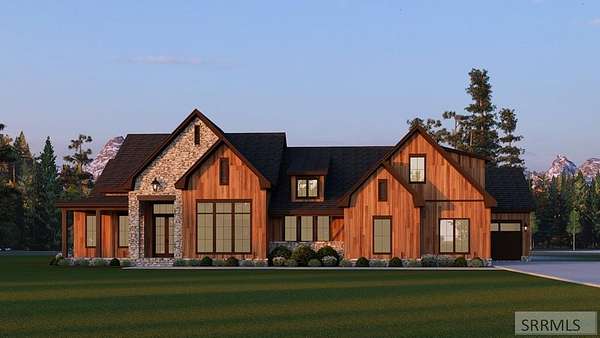 Luxury new construction mountain home on 3.6 creekfront acres in the private gated community of Shadow Ridge. This estate features upper-story Teton views and exquisite craftsmanship, including 8-ft solid wood doors, custom trim, and crown molding and lifetime warranty Mowhawk wood floor throughout the entire home. The grand foyer, dining, and great rooms boast 14-ft ceilings, while the rest of the home offers 10-ft ceilings. The gourmet kitchen is a chef's dream with quartzite counters, ceiling-height cabinetry, and premium appliances. The private master suite is a sanctuary featuring wood beams, tongue-and-groove ceilings, and a spa-like wet room with a freestanding tub, double shower heads, double rain shower heads and a featured tile wall. Three additional bedroom suites ensure guest comfort, while the upstairs vaulted bonus room includes a custom wet bar. Enjoy year-round outdoor living on the screened Trex porch featuring an outdoor fireplace and ceiling-mounted heaters. Completing the home is an insulated 3-car garage with a dedicated mini-split heater to store all your recreation vehicles. Proposed finishes are included in photos and are subject to change.