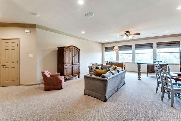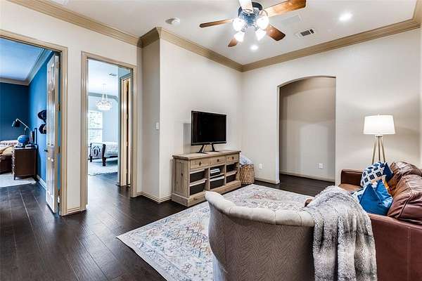 This custom Lovejoy ISD home is truly spectacular! You would be hard-pressed to find a floor plan with better flow and efficient use of space. Perfectly situated on 1.6 acres at the end of a cul-de-sac, this 5 bedroom, 6 full bath home has it all. Features include - 5 living areas (three downstairs, two up), a study with gorgeous built-ins and closet (could easily be a 6th bedroom as there is a full bathroom just out in the hallway next to it), massive kitchen with center island, desk area, updated appliances and walk in pantry. Downstairs includes a separate bedroom wing- two secondary bedrooms have ensuite full baths, two share a jack and Jill - all surround a living area with two built in desk areas. Primary suite is also downstairs in this wing, but separate from the secondary bedrooms. Primary bath includes separate jetted tub and walk-in shower. Two separate vanity areas and a huge walk in closet complete the primary suite. Upstairs, you will find a huge game room with a full bath, two large walk in closets and a media room. This area also includes two walk-out attic spaces. SO RARE to have ALL bedrooms downstairs along with all of the other great spaces in this home. Three-car garage connects to a long oversized driveway for plenty of parking and space for basketball, pickleball, etc. The enormous backyard is perfect for setting up a volleyball net, playing soccer, etc. Plenty of room for a pool in the future if desired.