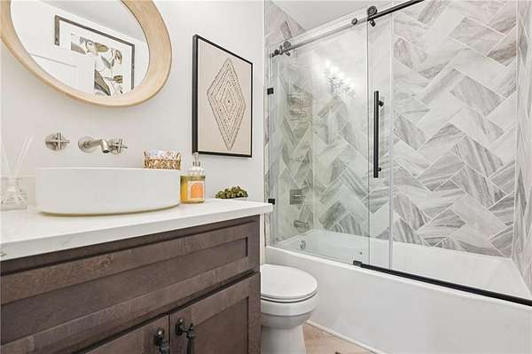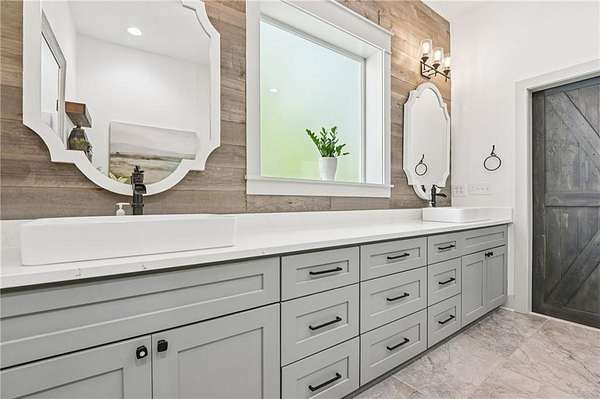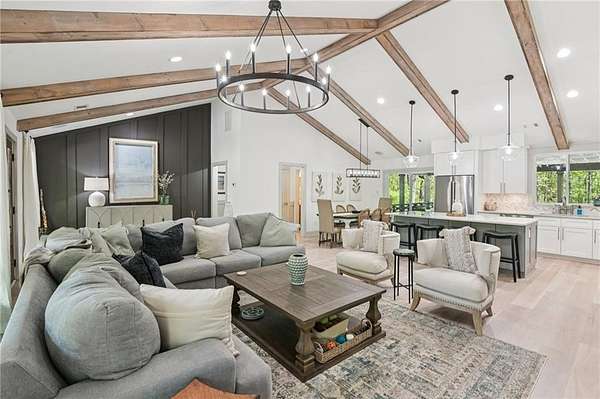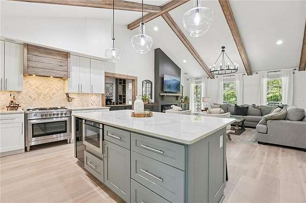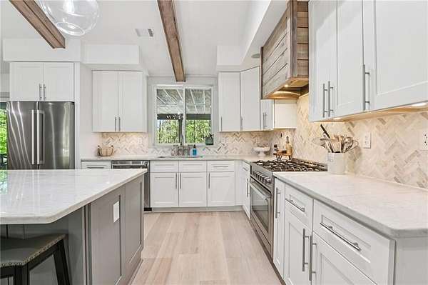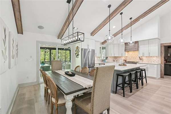 Modern farmhouse perfection on 2 private, level acres just over the Cherokee County line, bordering Milton, with no HOA and endless room to live, relax, and entertain in style! This home has been taken down to the studs and masterfully rebuilt in 2023 with all-new electrical, plumbing, windows, sheetrock, flooring, and high-end finishes throughout. The open-concept layout is anchored by a breathtaking 13-foot vaulted great room, highlighted by custom wood ceiling beams that add warmth and character. The chef's kitchen is a true showpiece, featuring 42" shaker cabinetry, striking quartzite countertops, a 5-burner chef-style range, under-counter microwave, and premium appliances, perfect for both everyday living and elevated entertaining. The spacious primary suite offers a serene escape with a custom walk-in closet system, a beautifully tiled oversized shower, and dual vanities topped with elegant quartz countertops. Step outside to your own private oasis. The in-ground saltwater pool features a PebbleTec finish, bubblers, custom lighting, and a splash pad. Unwind in the Hot Springs spa or entertain effortlessly with a fully equipped outdoor kitchen featuring a built-in Spire grill, refrigerator, burner, and granite countertops. The rear porch with outdoor fireplace overlooks the pool, while the expansive front porch, complete with a swing bed and custom railing, invites slow mornings and peaceful evenings. The property also features a detached two-car garage with epoxy floors and insulated doors, an additional two-car carport, and a circular driveway. The professionally landscaped, fenced yard enhances both beauty and privacy, with ample space for vehicles, boats, or trailers. This one-of-a-kind property combines luxury, craftsmanship, and wide-open freedom-your private modern farmhouse retreat awaits!
