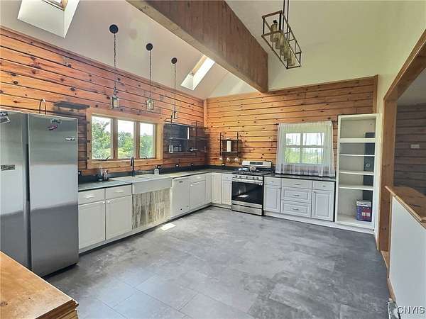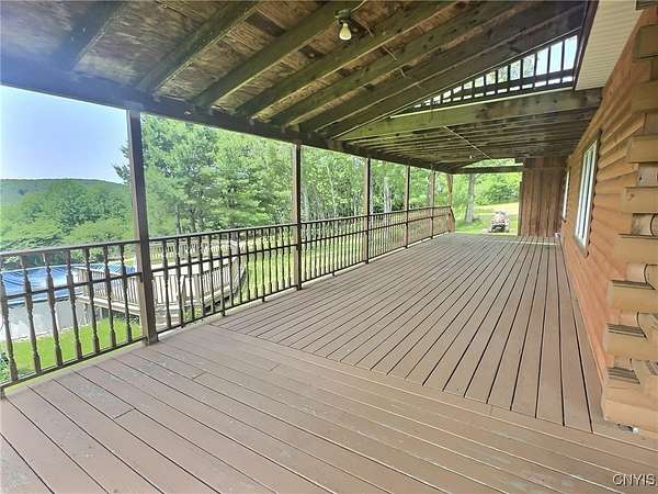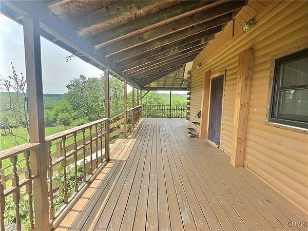 Welcome home to your private retreat on 43 scenic acres! This charming 3-bedroom, 2-bath log home is perfect for those who love nature, space, and comfort. Surrounded by rolling hills and wooded trails, it's an ideal setting for hiking, exploring, or simply enjoying peaceful country living. Step inside to find a warm, inviting interior featuring a beautiful stone fireplace - the perfect centerpiece for cozy nights. The newly remodeled bathroom adds modern comfort, while the spacious layout provides room for everyone.The finished basement includes a fun game room and a huge dry storage room, great for gear, hobbies, or a home gym. Outside, enjoy a wrap-around deck, second-story balcony, and a breezeway leading to the backyard - where you'll find an above-ground pool with its own deck for summer fun.The oversized garage is perfect for storing outdoor equipment, ATVs, or setting up a workshop. With so much space to roam, explore, and relax, this property is a dream for outdoor lovers.