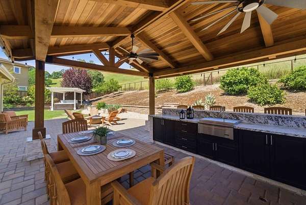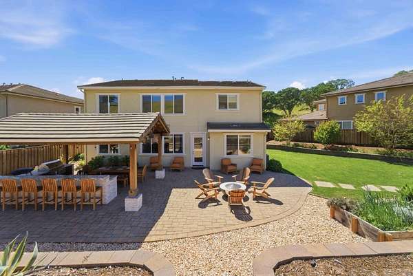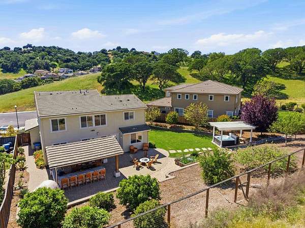 Perched atop a private hill in a rare enclave of just four homes, this exceptional residence by Denova Homes, built in 2014, offers a blend of luxury, privacy, and serenity. Featuring 5 beds, 3 baths, 3,083 sqft of living space on an expansive ~35,571 sqft lot, this home captures breathtaking views of mountains, rolling hills, and lush greenery. Over $400K in curated upgrades elevate this home into a private retreat featuring a resort-style backyard with gazebo, full outdoor kitchen with grill, pizza oven, and large sink, fire feature, above-ground jacuzzi, sauna room, and custom stone landscaping. Step beyond the back gate to your extended open space with direct access to a scenic hiking trail. Enjoy peaceful walks, outdoor activities, or watching children play and fly kites under open skies. Inside, enhancements include hardwood flooring, a surround sound system, solar panels, custom cabinetry, designer finishes, and blackout blinds throughout, creating a modern living experience. The spacious 3-car garage w/ two 240V ChargePoint charging stations adds convenience. This is more than a home, it's where memories were built, where family grew, and where the next chapter of life is ready to begin. Own this private hilltop retreat that inspires connection, comfort, and legacy.