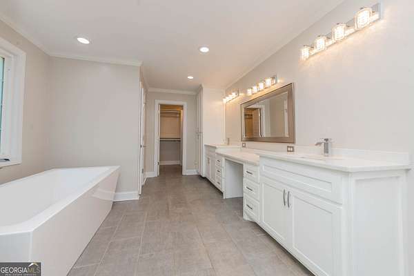 - Double Vanity, Separate Shower, Soaking Tub, Walk-In Closet(s)