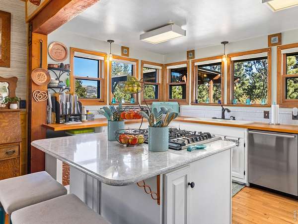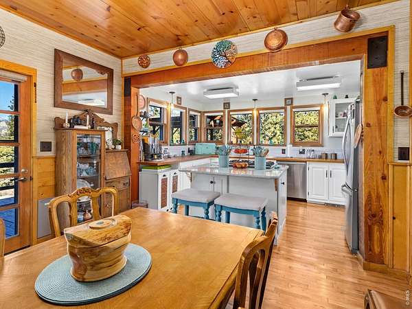 Grand yet inviting, timeless yet whimsical-this historic mountain Craftsman is a rare offering in one of Estes Park's oldest and most cherished neighborhoods. Over a century old, this home carries a sense of story and stewardship, beautifully updated for modern living while honoring its rich character. From the covered front porch-perfectly suited for a pair of rocking chairs-take in breathtaking views of Longs Peak as the day quietly fades into mountain stillness. Inside, over 3,500 square feet of warm, welcoming space unfolds with two fireplaces, updated kitchen, five bedrooms and three bathrooms, and generous storage throughout-designed for both gathering and quiet retreat. Set on an exceptional 4.03 acres, the property is nothing short of magical. Open meadows, whispering aspen groves, and towering pines create a private sanctuary where wildlife roams freely-elk by the hundreds, deer, wild turkeys, and songbirds-offering a daily connection to the natural beauty that defines Estes Park. Every window frames a view-snow-capped peaks, forested hillsides, and ever-changing skies-creating the feeling of being immersed in nature, yet just five minutes from town. An attached garage and adjacent 18' x 16' workshop provide space for hobbies, projects, or adventure gear. A property to be experienced, not just seen-1661 Windham Court is a legacy home, ready for its next chapter.