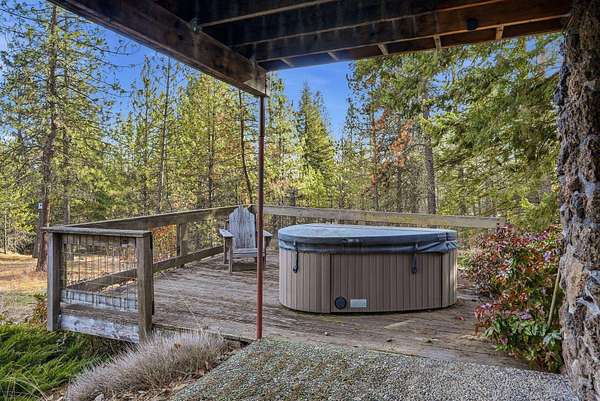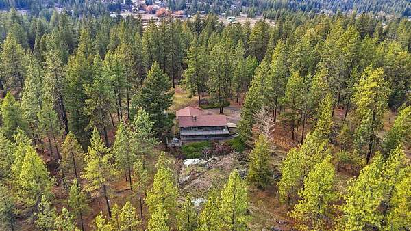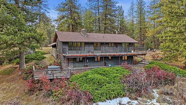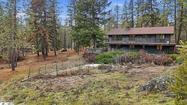 A once-in-a-generation opportunity awaits with this secluded 16-acre wooded estate, available for the first time since it was built in 1967. Tucked away for ultimate privacy at the end of a long drive, this 2,243 sqft retreat offers a rare blend of mid-century integrity and expansive natural beauty. Meticulously cared for by the same family for nearly 60 years, the home features a main level with hardwood floors and a striking dual-sided wood fireplace that serves as the architectural heart of the living room area. An oversized back deck, offering breathtaking, territorial views of your own private forest and mature timber. With 3 bedrooms, 2 bathrooms, and a 2-car garage, the structure is rock-solid and provides the perfect canvas for a modern renovation. The sprawling acreage functions as a true basecamp for the Inland Northwest lifestyle, complete with winding trails and garden spaces, offering total seclusion just minutes from Wandermere shopping center