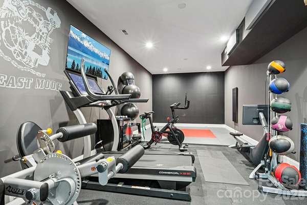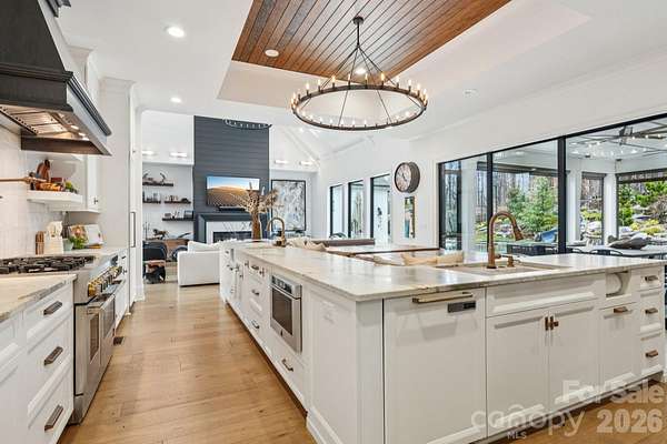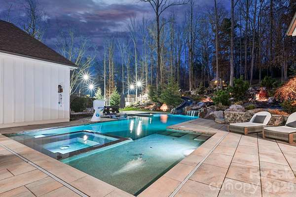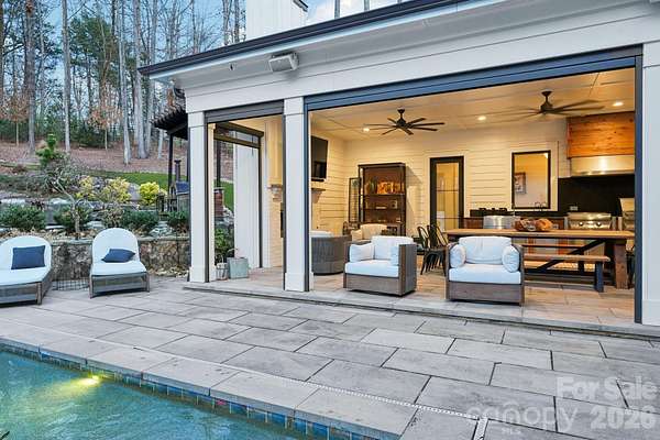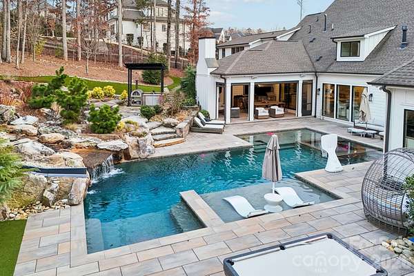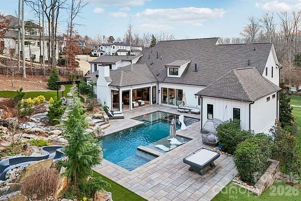 Exceptional luxury living in the highly sought-after River Run community of Davidson. Situated on a private 1.5+ acre estate lot, this stunning custom home blends elegant design, modern comfort, and resort-style outdoor living. Thoughtfully designed with expansive living spaces, high-end finishes, and seamless indoor-outdoor flow, the home offers both sophistication and functionality for everyday living and entertaining. The chef's kitchen features professional-grade appliances, a large center island, and custom cabinetry, opening to spacious living and dining areas filled with natural light. The main level includes a luxurious primary suite and guest accommodations designed for comfort and privacy, while additional living areas and flexible spaces throughout the home provide room for work, fitness, and entertainment. Step outside to your private backyard retreat designed for year-round enjoyment. The grounds feature a custom pool with slide, pickleball court, basketball court, private putting green, and multiple gathering areas including a fire pit with seating, outdoor kitchen by the pool, and a wood-fired pizza oven-creating the ultimate setting for entertaining and recreation. Additional highlights include a 4-car garage plus dedicated golf cart garage, beautifully landscaped grounds, and expansive outdoor living spaces. Located within the desirable River Run community offering golf, tennis, swimming, and scenic walking trails, all just minutes from charming downtown Davidson, Lake Norman, dining, and shopping.