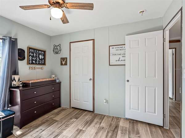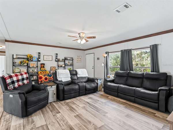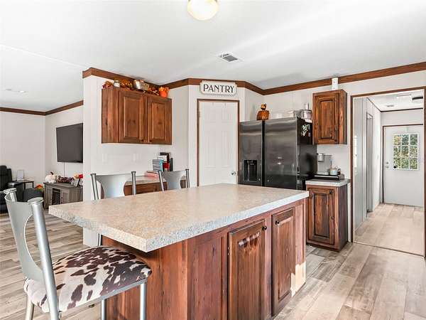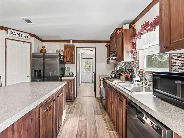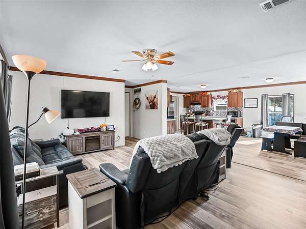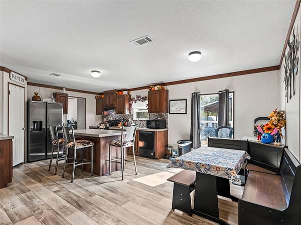 Located on 2.59 acres of agriculturally zoned land just outside Dunnellon, this beautiful 2024 manufactured home offers the best of both worlds: stylish living and wide-open possibilities. With 5 bedrooms, 3 full baths, and 1,920 square feet of open-concept space, it's designed for comfort and flexibility. One Jack-and-Jill bathrooms, including a clever pass-through from the master suite to the laundry room to add convenience, while walk-in closets and a generous walk-in pantry keep things organized. The kitchen shines with dark wood cabinetry and a custom backsplash that adds personality and polish. Enjoy no HOA and true freedom to bring your horses, livestock, or outdoor hobbies to life. A 12x20 metal shed and a 40x60 pole barn structure offer plenty of room for equipment, animals, or future projects. All this just minutes from WEC, Rainbow River, and Downtown Ocala, making it easy to enjoy nature, recreation, and world-class amenities while living life on your terms.