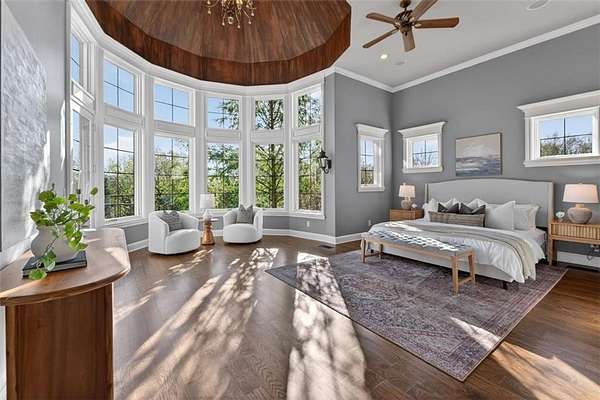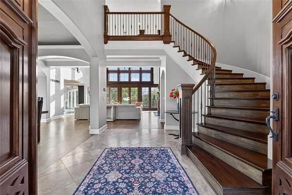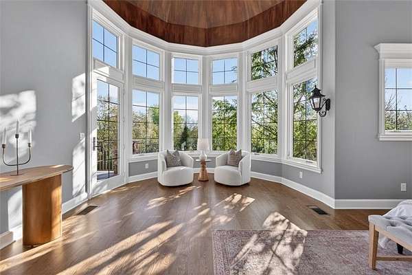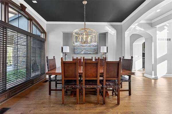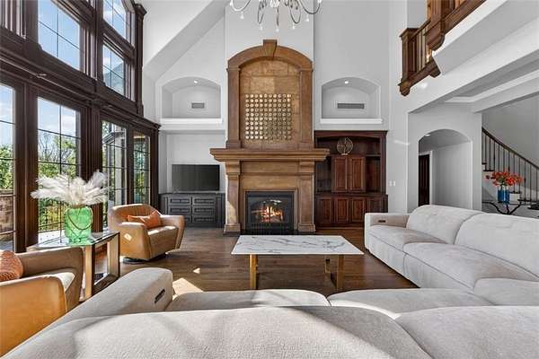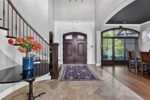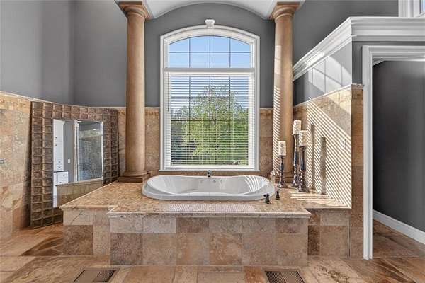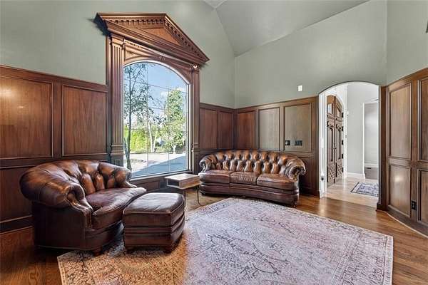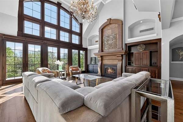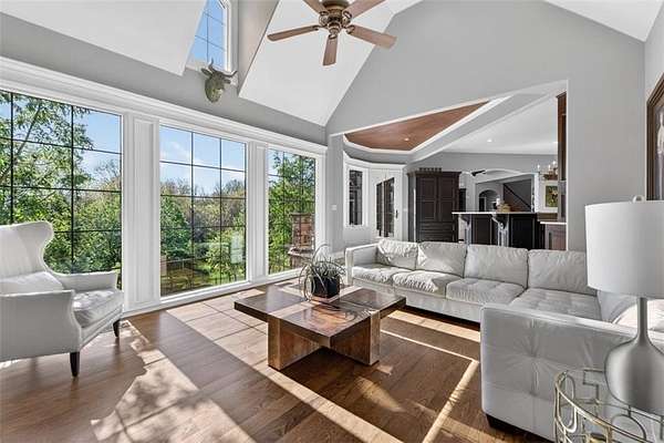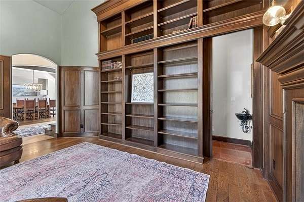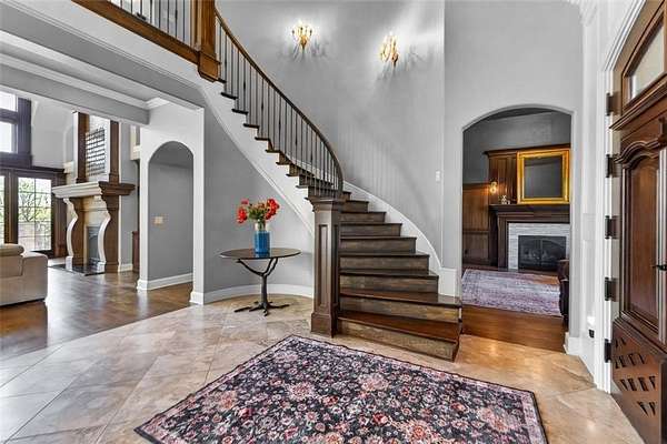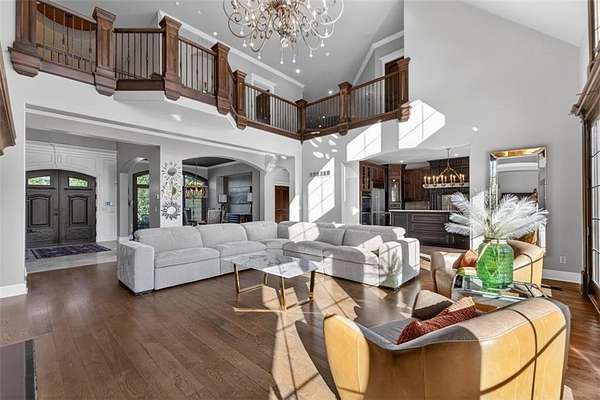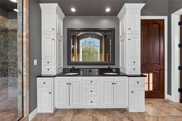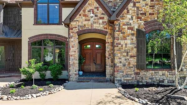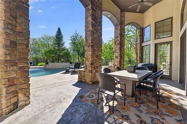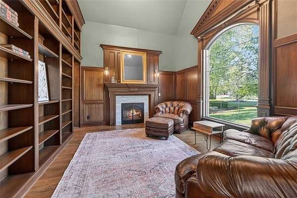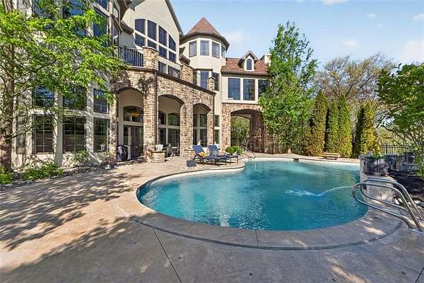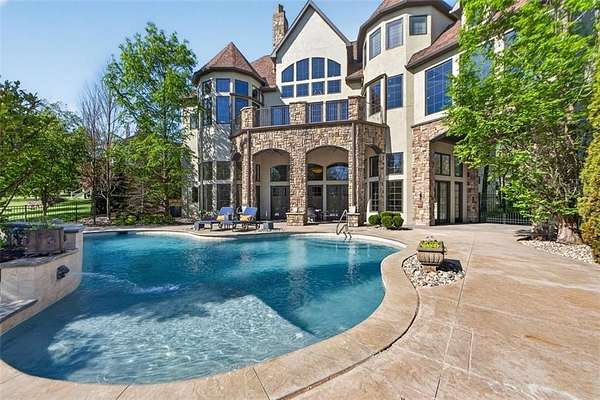 Rarely does a property offer such a profound sense of sanctuary. Set on a sprawling 1.79-acre private lot, this gorgeous home is a masterclass in intentional design and quiet luxury. From the quiet retreat of the private library to the intentional design of the butler's pantry, the home's core flows effortlessly into living spaces defined by custom millwork and an organic palette. Private, primary suite is on the main floor offering ultimate privacy and convenience, each additional bedroom throughout the home features its own dedicated ensuite. For the entertainer, the home features two full kitchens and a dedicated wine cellar, ensuring every gathering is effortless. A private elevator provides seamless access from the main floor to the basement, making the grand scale of this home feel intimate and accessible. And one of the most captivating features is the transition to the outdoors: a breathtaking lanai overlooking a pristine pool and a lush, treed backdrop. With 3 garage bays in front and a side workshop/storage with garage entry, and unparalleled privacy, this Kearney home is not just a residence; it is a private, peaceful sanctuary.