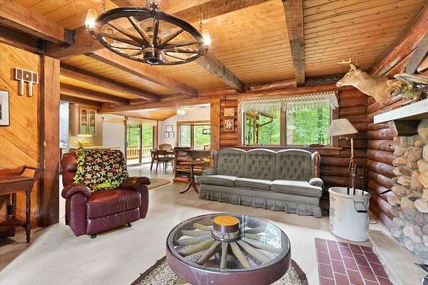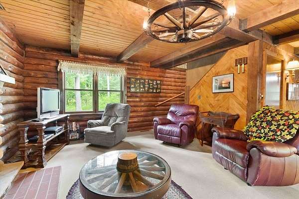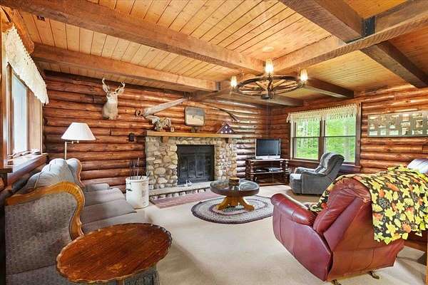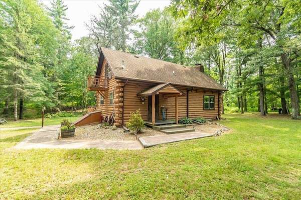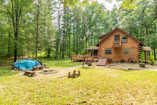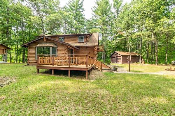 Rustic Log Home on 20 Wooded Acres Near Castle Rock & Petenwell Lakes! Escape to this authentic log retreat nestled on 20 lush, wooded acres just a short drive from both Petenwell and Castle Rock Lake. The home boasts an inviting open concept with a massive wood-burning fireplace and a wood furnace for cozy warmth. Outdoors, enjoy lazy evenings at your firepit sharing stories under the stars--plus a spacious deck perfect for entertaining or quiet reflection. A detached two-car garage offers plenty of storage, while the surrounding forest ensures privacy and tranquility. Ideal for those craving rustic charm, natural beauty, and easy access to premier fishing, boating, UTVing and wildlife viewing. Nearby many championship golf courses. Your serene haven awaits. Call today!