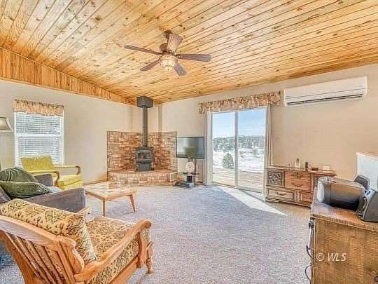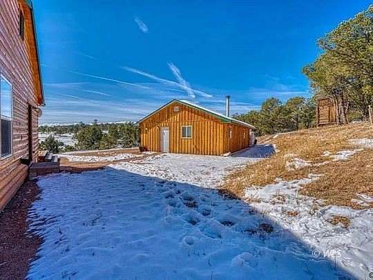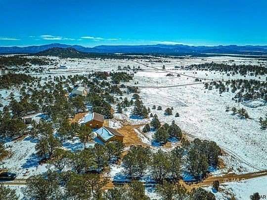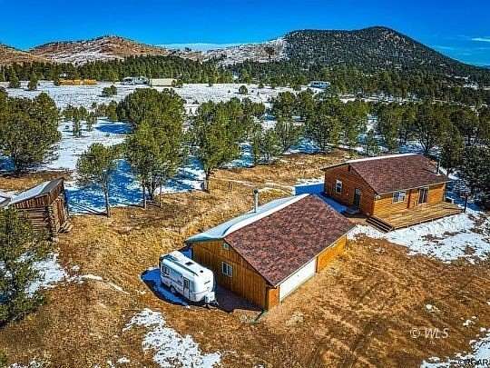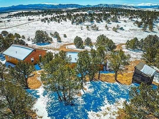 Mountain living at it's finest! This pristine move-in ready 2 bedroom, 2 bath cabin has stunning views of the Sangre de Cristo and Wet mountains an oversized heated and insulated garage with a work shop, storage room, and a serene setting on close to 3 acres, for your year round enjoyment or recreational use. Designed for casual and comfortable mountain living, the eat-in kitchen has tile floors and countertops, beautiful hickory cabinets, laundry, coffee bar, and opens toa large living room with vaulted ceiling lined with beetle kill pine, woodburning fireplace and sliding door with tile surround leading to the deck. Two large bedrooms are separated by a beautiful full guest bath with tile shower walls and flooring and solid surface countertop. The master bedroom has a large private bath with rustic tile accents, and two sinks. Equipped with electric baseboard heat, the wood stove, plus a super-efficient mini-split system, the home is cozy in the winter and is comfortably cool during the summer. The oversized, insulated 2 car garage has plenty of space for all your hobbies!