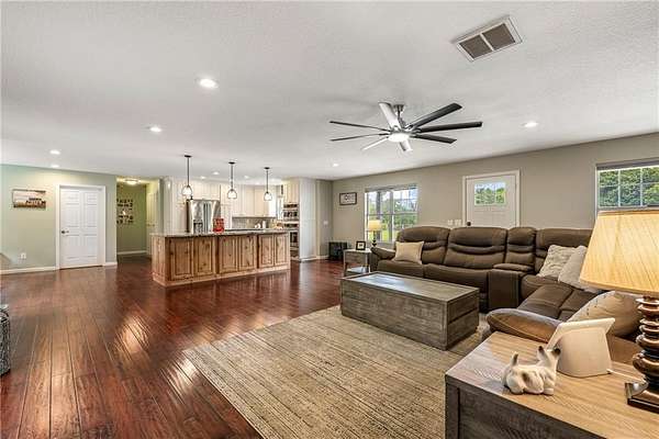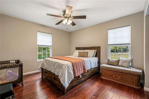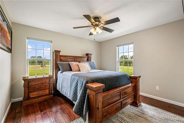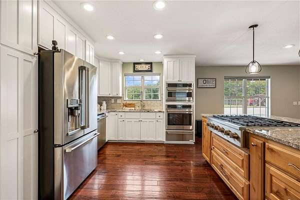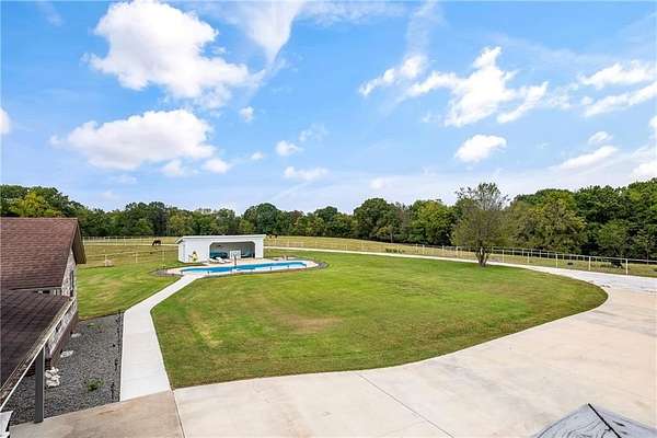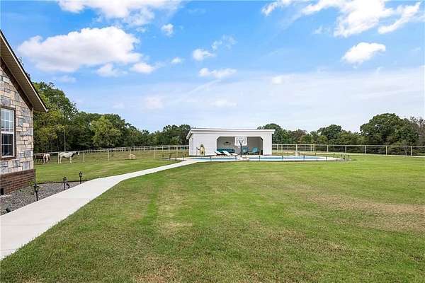 Experience modern country living on 30 fully fenced acres in Pea Ridge. This 3500 sq ft home blends refined finishes with functional acreage. The open floor plan features an updated kitchen with new cabinetry, fixtures, and Cafe Collection appliances (including refrigerator with built-in espresso feature). Split layout with 3 bedrooms, 2.5 baths The oversized primary suite showcases a spa-style wet room that combines a freestanding tub and walk-in shower. Upstairs, a versatile bonus room includes built-in desks, bar, and new half bath. Outside, enjoy an in-ground pool with a covered gazebo, ideal for relaxing or entertaining with views of rolling pastures. The 3500 sq ft heated/cooled shop (renovated/expanded in 2024) and brand-new barn with 4 stalls with fence runs, tack room, and feed room. All this with a new hay barn and water spigots throughout, and 3 cross pastures make this property ready for horses or livestock. 3 New HVAC-new water heater w/ insta-hot, new propane tank (recently refilled), well, cox fiber