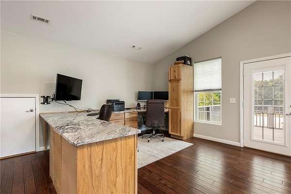 - Built-Ins, Cathedral Ceiling, Ceiling Fans, Eat-in-Kitchen, Energy Star Appliances, Ice Maker Connection, Led Lighting, Pantry, Programmable Thermostat, Quartz Counters, Smoke Detector, Split Floor Plan, Walk-In Closets, Wet Bar