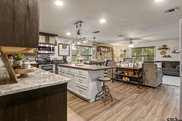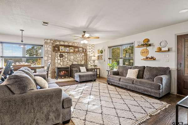 Set against the peaceful backdrop of the scenic Belly Acres, this expansive 300-acre property offers a captivating mix of functional ranch infrastructure and recreational luxury. Every detail has been thoughtfully designed to complement the natural surroundings while offering modern amenities for both comfort and utility. The recently renovated home boasts over 2,000 square feet of carefully designed living space, perfect for hosting family gatherings. The chef's kitchen, complete with stainless appliances and plenty of storage, is the heart of the home. The spacious primary suite is a peaceful oasis, featuring an elegant ensuite bath with a soaking tub, shower big enough for two, and double sinks, for the ultimate convenience. Two guest rooms share a well appointed hall bath. Outdoor living is just as thoughtfully designed, with a sparkling pool and fully equipped outdoor kitchen perfect for entertaining, plus a screened porch that invites you to relax and take in the serene views. Two well-maintained barns and a spacious 34x45 shop offer ample room for equipment, livestock, or projects, while a charming on-site cabin adds flexibility as a guest house, hunting lodge, or retreat. Whether you're dreaming of a legacy property, a private hunting haven, or simply a place to reconnect with the land, this extraordinary estate invites make your dreams reality.