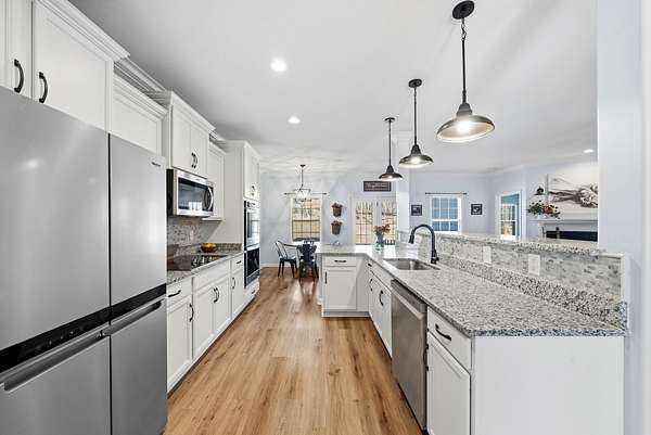 - Cooktop, Dishwasher, Disposal, Double Oven, Electric Oven, Microwave, Refrigerator, Stainless Steel Appliance(s)
