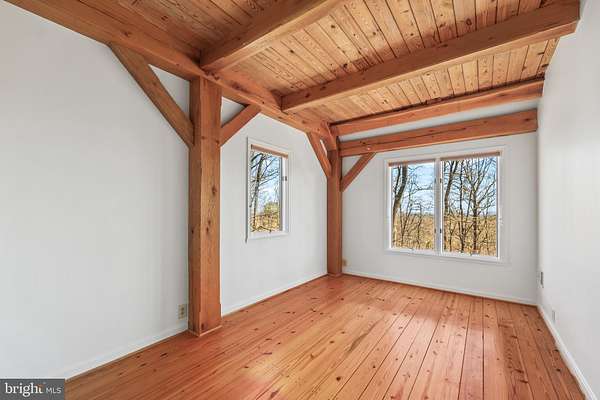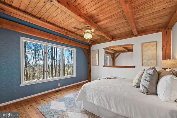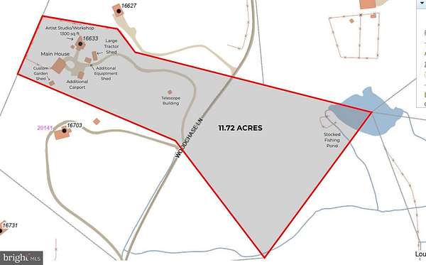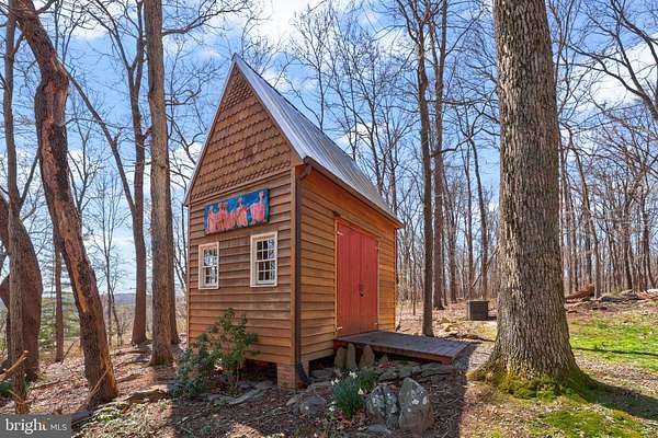Private, Peaceful, and One of a Kind: perched high on a hill in the highly sought-after Village of Round Hill, this 11+ acre retreat offers a rare blend of craftsmanship, creativity, and open meadowland. Built with timber-framed construction and exposed beams, the home has been lovingly maintained and enriched with distinctive accents crafted from repurposed wood harvested from the surrounding land. Spanning four levels, the home is anchored by an extra-large, two-story living room with a gas fireplace and and flooded with natural light. The seller, an artist and sculptor, customized the fireplace surround and hearth, and that same eye for detail carries throughout, including kitchen cabinetry built by the owner. The main level flows beautifully with a kitchen and breakfast area that opens to a rear deck running the length of the home, plus a dining room, sitting room, half bath, and a practical mudroom entry. Antique double entry doors open to a covered front porch overlooking a fully fenced, flat grassy yard bordered by trees, a true oasis for relaxing and entertaining. Upstairs, the primary suite captures sweeping views down the hill over the acreage and includes an ensuite bath. A mezzanine overlook opens to the living room below, and an impressive run of custom built-in bookcases and storage stretches along the home. A second bedroom and full bath complete this level. The top floor offers a large sitting area with two additional bedrooms, each brightened by dormer windows. The lower level adds flexibility with a partially finished basement featuring a full bath, abundant storage, and walkout access to a flagstone rear portico. The outbuildings are a standout! The approximately 1,300 square foot artist's studio features a dramatic vaulted, skylit roofline and soaring ceiling height that fills the space with natural light, plus built-in workbenches, a utility sink, oversized double doors, and a floor-to-ceiling stone fireplace with wood stove. A wood-burning kiln sits just outside. Two additional large sheds, a double run-in shed, and a large tractor shed, offer serious utility for tractors, cars, and equipment, with a riding lawnmower that conveys. Even the hardware and hinges have character here, reflecting the artistry behind every structure. Additionally, a large utility shed with custom mahogany fish-scale shingles, electricity, workbenches, and tall ceilings rounds out the special feel and flexibility of this property. There is also a large, deep, oversized one-car garage. For added convenience, there is another complementary custom carport. To round out the property, there is a dedicated observatory shed with a specially designed roll-back roof, housing a telescope and lenses that convey. This is a lifestyle property. Country charm meets everyday serenity here. Sip your coffee on the porch as deer and wild turkeys pass through the meadow, listen to the birds in the trees, and enjoy the quiet that comes with space, sky, and nature while soaking in the privacy of 11+ acres. When you want to get outside, you are about 10 minutes to the Shenandoah River, with easy access points for launching your kayak, plus nearby trails, wineries, and weekend adventures, all while still being roughly 20 minutes to Dulles International Airport. The property also includes access to a shared 1.5-acre stocked fishing pond. You truly have to see it in person to experience the detail, charm, and setting.