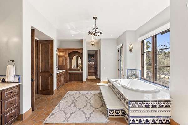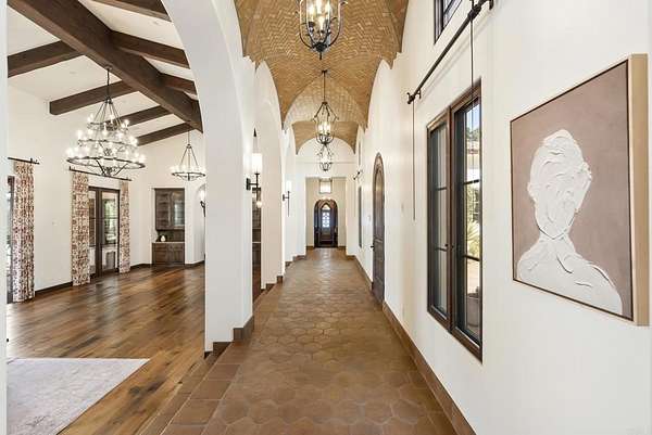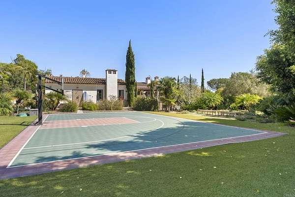 Experience resort-style living in this extraordinary Spanish Revival estate, available as a rare long-term rental within the highly coveted Rancho Santa Fe Covenant. Situated on nearly 2 acres on one of the area's most premier streets, 16636 El Zorro Vista offers just under 10,000 sq. ft. of refined living space with timeless craftsmanship and every luxury amenity imaginable. The main residence features 4 spacious en suite bedrooms, complemented by a 1-bedroom detached guest house--perfect for guests or extended family. Designed for both comfort and entertainment, the home includes an incredible private movie theater, resort-style pool and spa, sports court, chicken coop, and expansive lawns with panoramic views. Inside, classic Spanish architecture meets modern convenience with exposed beams, custom stonework, and hand-carved finishes throughout. The open floor plan allows seamless indoor/outdoor living, ideal for enjoying Rancho Santa Fe's year-round sunshine. Located within the RSF Covenant school system and offering both prestige and accessibility this property represents a rare opportunity to lease a true estate compound. Offered fully furnished and completely turnkey, 16636 El Zorro Vista delivers the ultimate Rancho Santa Fe lifestyle--private, elegant, and effortlessly luxurious.