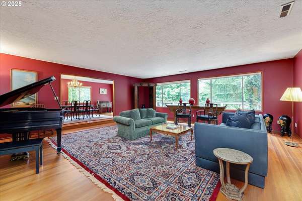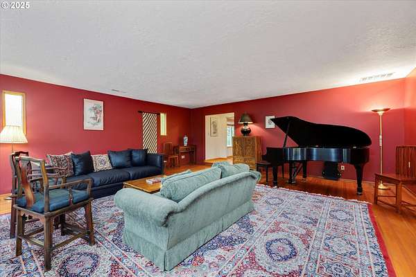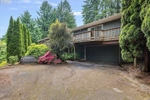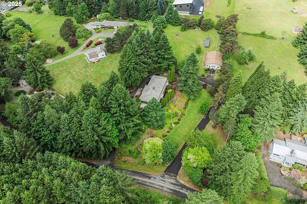 Are you ready for fall in wine country? Experience the best of Oregon's wine country in this stunning 4,781 sq. ft. daylight ranch, secretly situated on 2.6 acres of serene beauty. Use the Virtual Tour link for a 3D walkthrough. With four bedrooms, three baths, an office, and two levels, this home offers a spacious and versatile layout, complete with hardwood floors throughout the main level wrapped in custom handwoven rugs for added elegance. The tile roof adds durability and charm, while the outdoor deck surrounds the house to provide a peaceful retreat with views of mature landscaping and surrounding trees. Likewise the circular driveway surrounds the house and shop, including a permeable paver section near the house, giving two routes of entry and exit. The lower level has an extra bonus room, a fourth bedroom, an office, and a wet bar. A storage/workshop on the same level adds functionality for hobbies or projects. The property is a haven for those seeking both functionality and lifestyle. A detached 40x60 warehouse includes a second 40x20 office and a 40x40 open shop with concrete floors, ideal for small business operations or creative pursuits. The solar array with storage batteries provide backup to warehouse. Nestled between the award-winning towns of Sherwood and Newberg, this home is surrounded by breathtaking vistas of vineyards, hazelnut orchards, and Christmas tree farms. You will benefit from a Sherwood address yet Yamhill county taxes and Newberg schools. The mature landscaping, enhanced by native plantings, provides year-round beauty and tranquility. At 900 ft elevation, winters transform the property into a snowy wonderland, perfect for skiing, sledding, and peaceful snowshoe walks along quiet neighborhood roads. In warmer months, enjoy cycling to Bald Peak State Park and taking in the spectacular views of Yamhill County. This property is more than a home-it's a destination. Come see for yourself why this is the perfect place to call home.