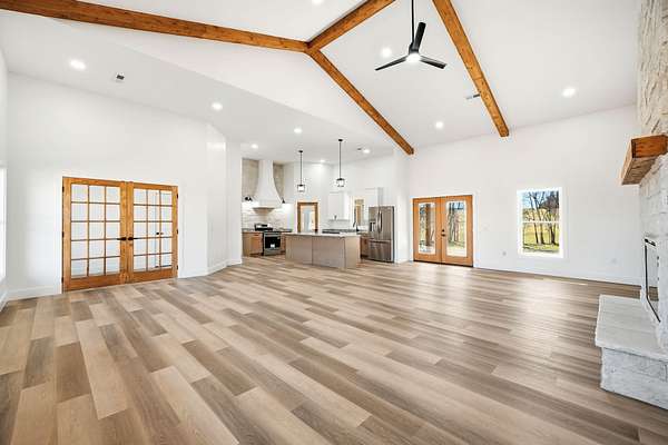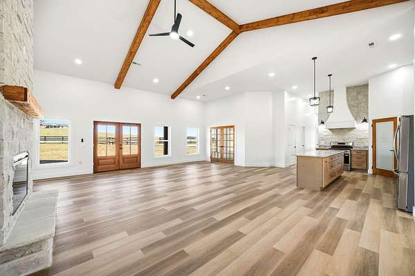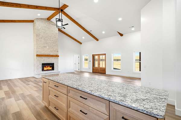 - Beamed Ceilings, Granite Counters, Kitchen Island, Open Floorplan, Pantry, Recessed Lighting, Soaking Tub, Solid Surface Counters, Vaulted Ceiling(s), Walk-In Closet(s)