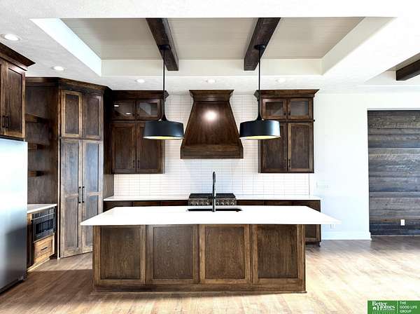 Whitney Lichtenberg, M: 402-639-6941, whitney.lichtenberg@betteromaha.com, https://www.betteromaha.com - Farmhouse Style 1.5 Story Custom Home by Advantage Development located in the new exclusive Gretna acreage subdivision, The Sandhills. Sitting on over 10 acres, this remarkable home features a fantastic floor plan with white oak hardwood flooring, granite countertops, high-end finishes, rustic ceiling beams and a 4-car executive garage. Beautiful exterior with cedar columns and gables, exceptional main level Master Suite, spacious upper level loft and an unfinished walkout basement with potential for wet bar and additional bedrooms. You can't beat the views! Low tax levy of 1.83. Outbuildings allowed. Private well and septic system. Estimated Completion: July 2025
