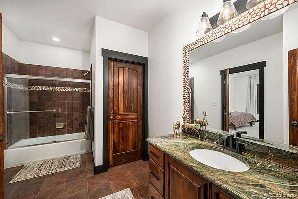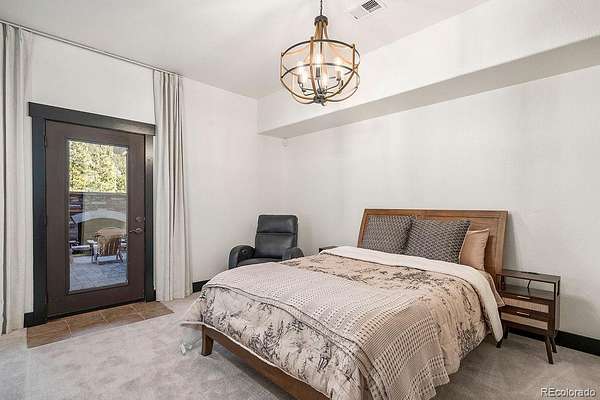 Two bedrooms and a full bath complete the walkout level, including a bunk room and guest room with patio access.