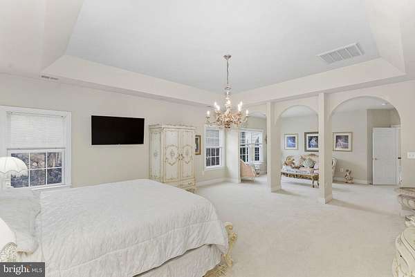 Set at the end of a peaceful cul-de-sac, approximately six miles west of Leesburg, 16655 Macnaughton Ct offers a rare estate setting in the heart of Loudoun County's renowned Wine Country. Situated on nearly 4 acres, this exceptional property offers close to 8,000 square feet of total living space, surrounded by open green views, mature trees, and thoughtfully established landscaping that provides privacy and abundant natural light. A stately, tree-lined approach leads to this classic residence, built on the Tara floor plan by K. Hovnanian Homes, with a design that allows for future elevator installation. Upon entry, a dramatic two-story foyer showcases soaring ceilings and elegant finishes, complemented by porcelain tile flooring throughout the main level. The main level is thoughtfully designed for both everyday living and entertaining, featuring expansive gathering areas, a gourmet kitchen with a walk-in pantry, and seamless access to the rear deck for effortless indoor-outdoor living. The family room is anchored by a pellet fireplace, adding warmth and character, while a main-level guest suite or private study offers flexibility for visitors or work-from-home needs. The upper level features a spacious owner's suite with a walk-in closet and a spa-inspired bath complete with a soaking tub, walk-in shower, and dual vanities. Three additional bedrooms each include their own private bath, providing comfort and privacy for family and guests alike. The fully finished walk-out lower level completes the home, offering a bedroom, full bath, bonus room, and expansive recreation and entertaining spaces-ideal for hosting gatherings, creating a home gym, media room, or accommodating multigenerational living. Additionally, this home offers a newer roof and HVAC units. Outdoor spaces are equally impressive, offering room for recreation, entertaining, or quiet enjoyment of the surrounding landscape. Mature plantings, including fig and crabapple trees, further elevate the property's scenic beauty. Nearly every room captures scenic views of the rolling grounds and local wildlife, creating a true sense of retreat. Offering a rare combination of elegance, privacy, and location just minutes from historic Leesburg, this property presents a unique opportunity to experience Loudoun County estate living at its finest.